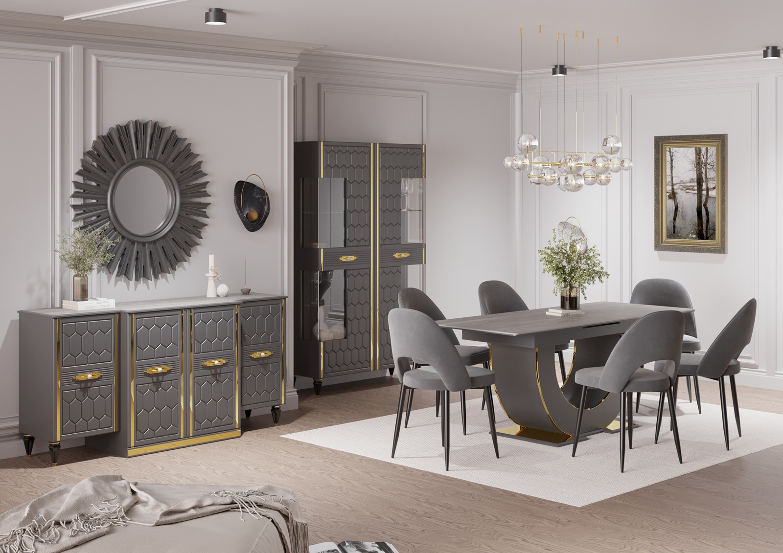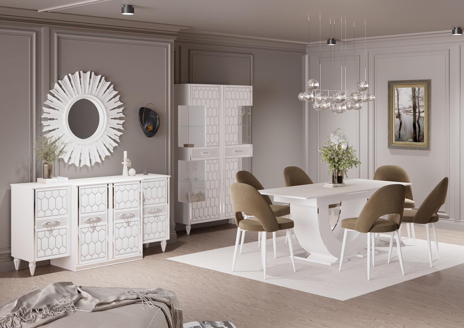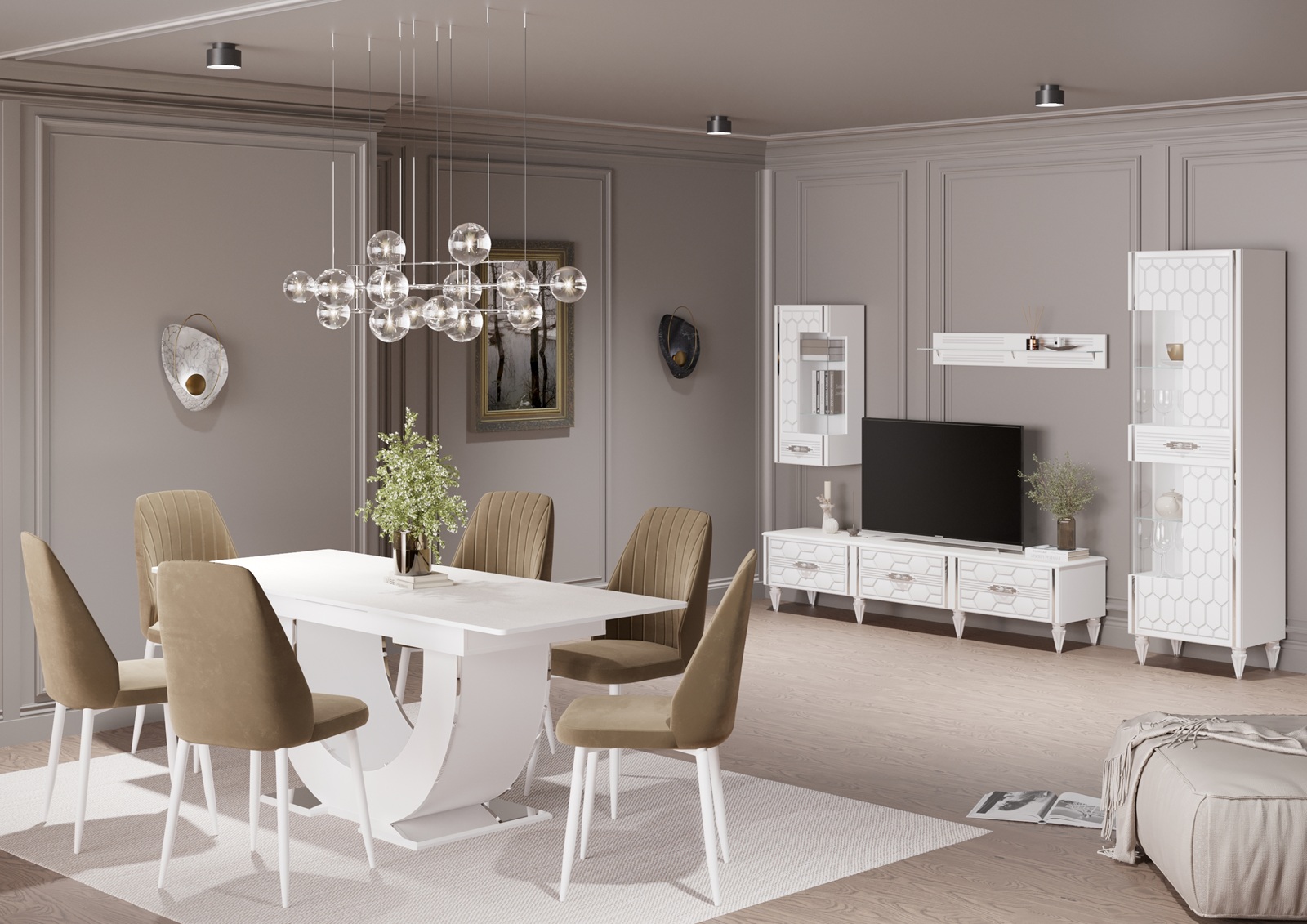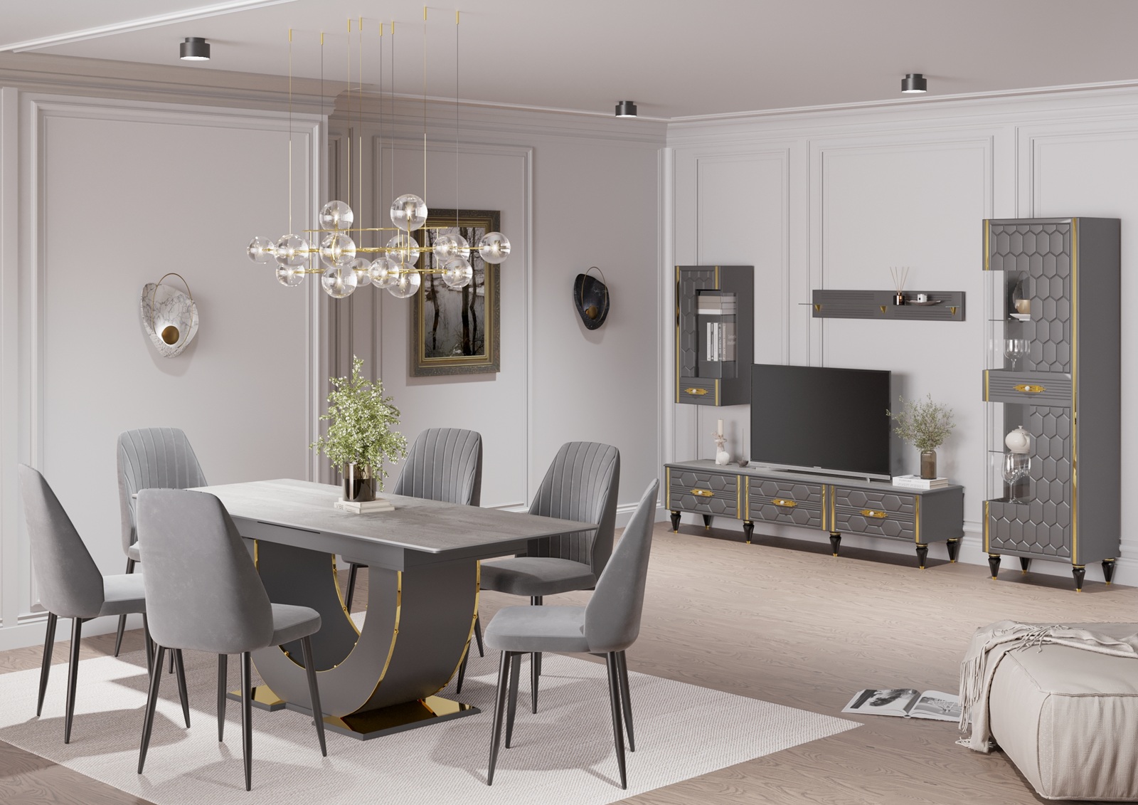 - Модульные гостиные — гибкое решение для создания индивидуального интерьера. Вы самостоятельно выбираете элементы: тумбы, пеналы, витрины, полки и комбинируете их по своему вкусу. Модульная система легко адаптируется под любую площадь — от компактных квартир до просторных залов.