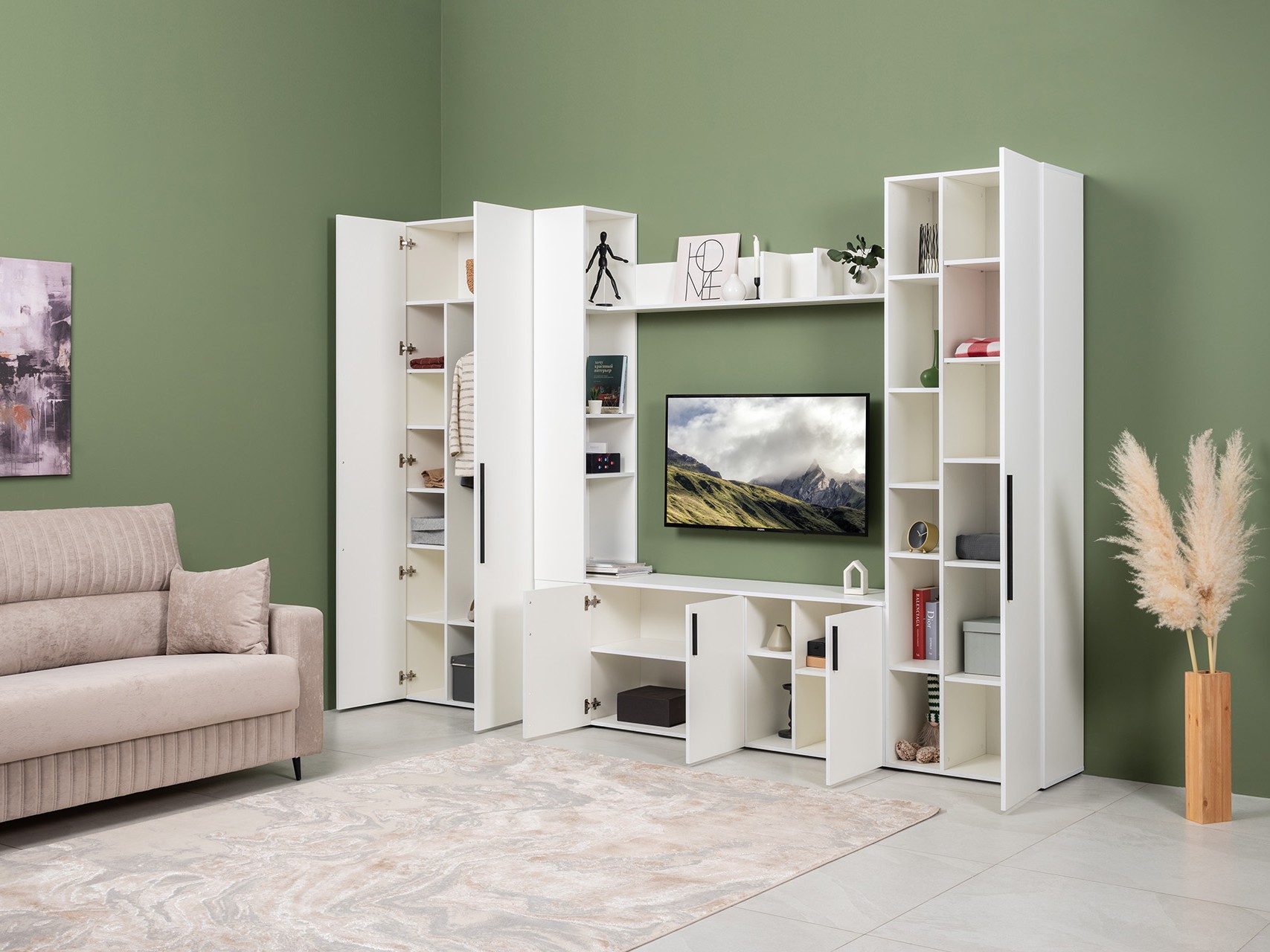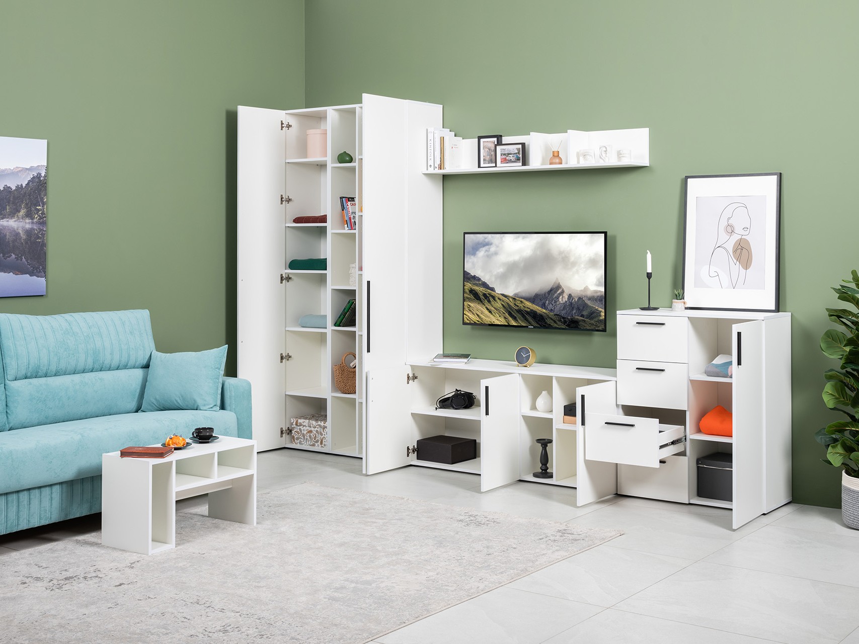 - Вы сможете купить стенки для гостиной и другие гарнитуры с современным внешним видом. Они выполняются в стилях минимализм, лофт, хай-тек и т.д.