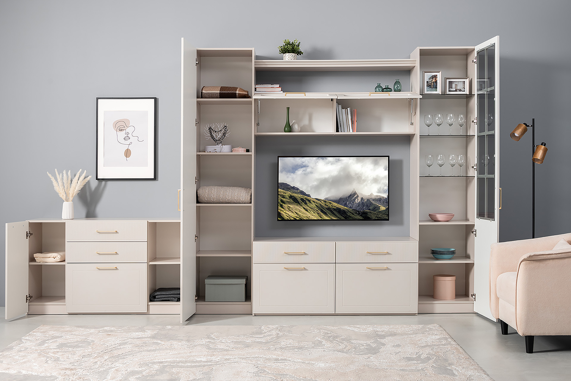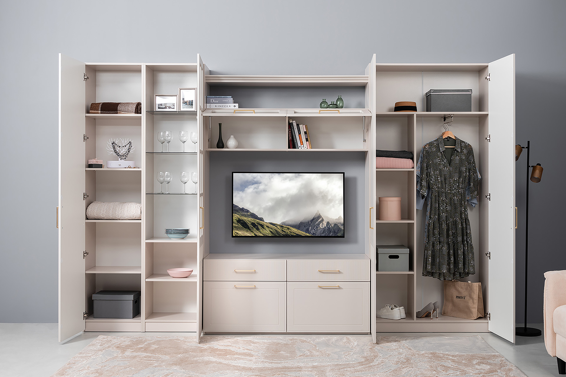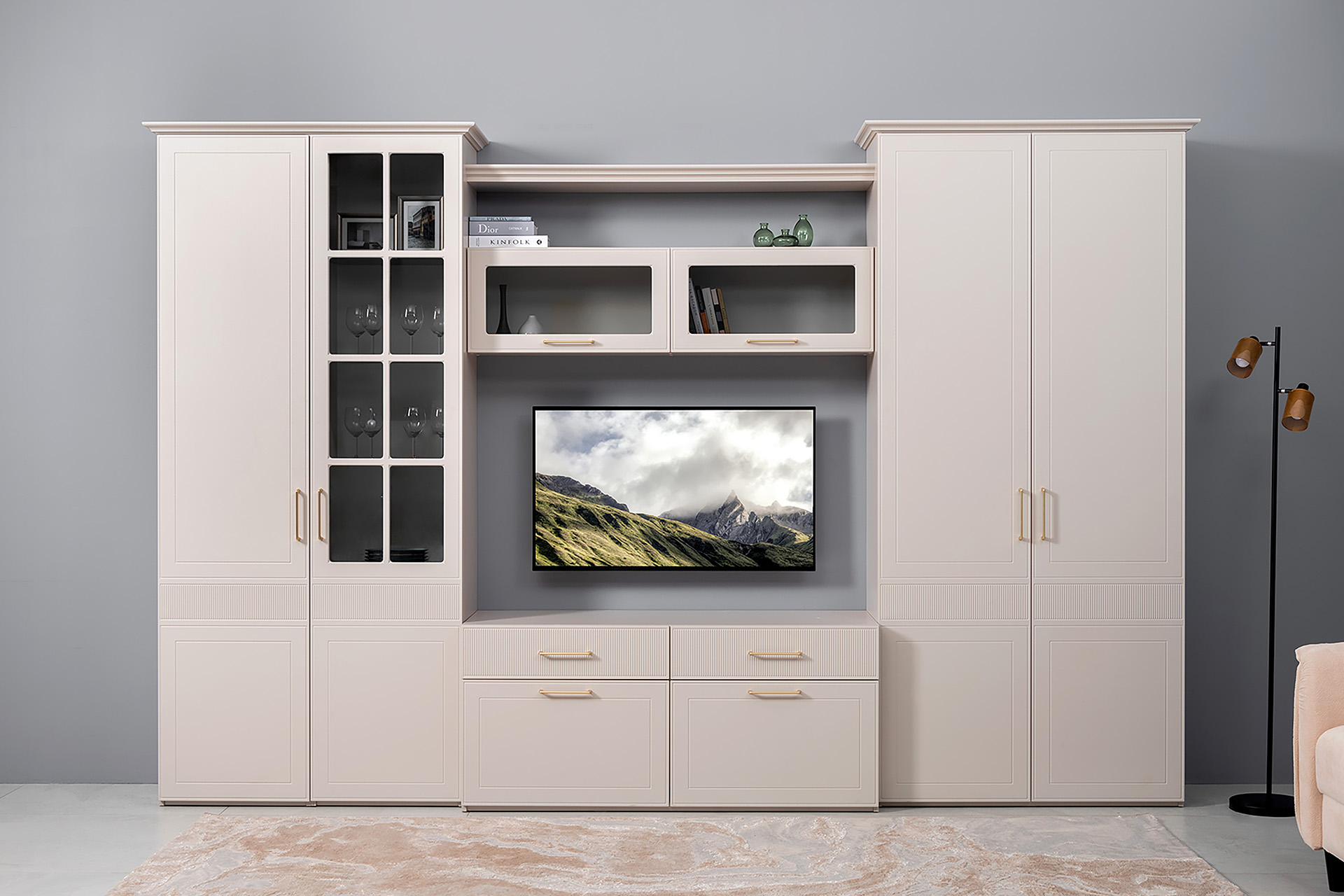 - Гарнитуры для гостиной имеют компактные размеры, при этом обеспечивают высокую функциональность.