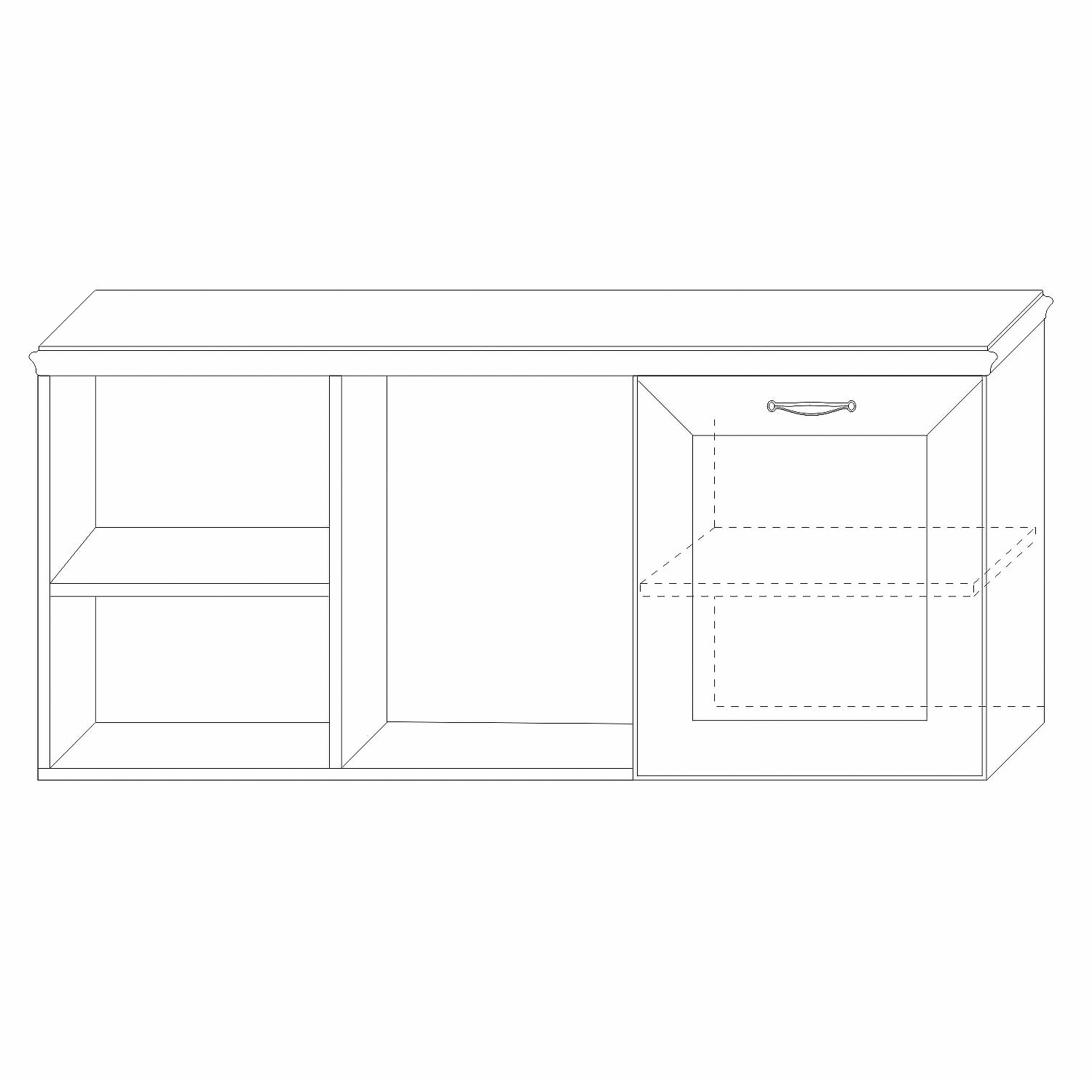 Дизайн модуля соответствует классическому стилю коллекции «Сиена». Корпус изготовлен из светлого ЛДСП «Бодега белый», а в качестве декора применяются профиль МДФ в плёнке ПВХ в цвет корпуса. Золотое патинирование деталей придает мебели роскошный и изысканный вид. Металлическая ручка цвета «старая бронза» украшает дверку.