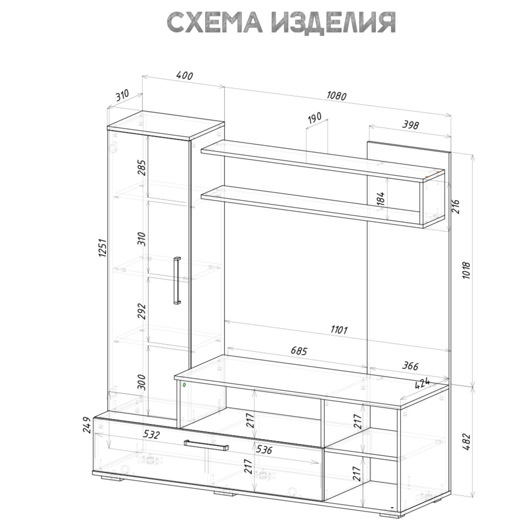 Размер ниши под ТВ (ШхВ), мм