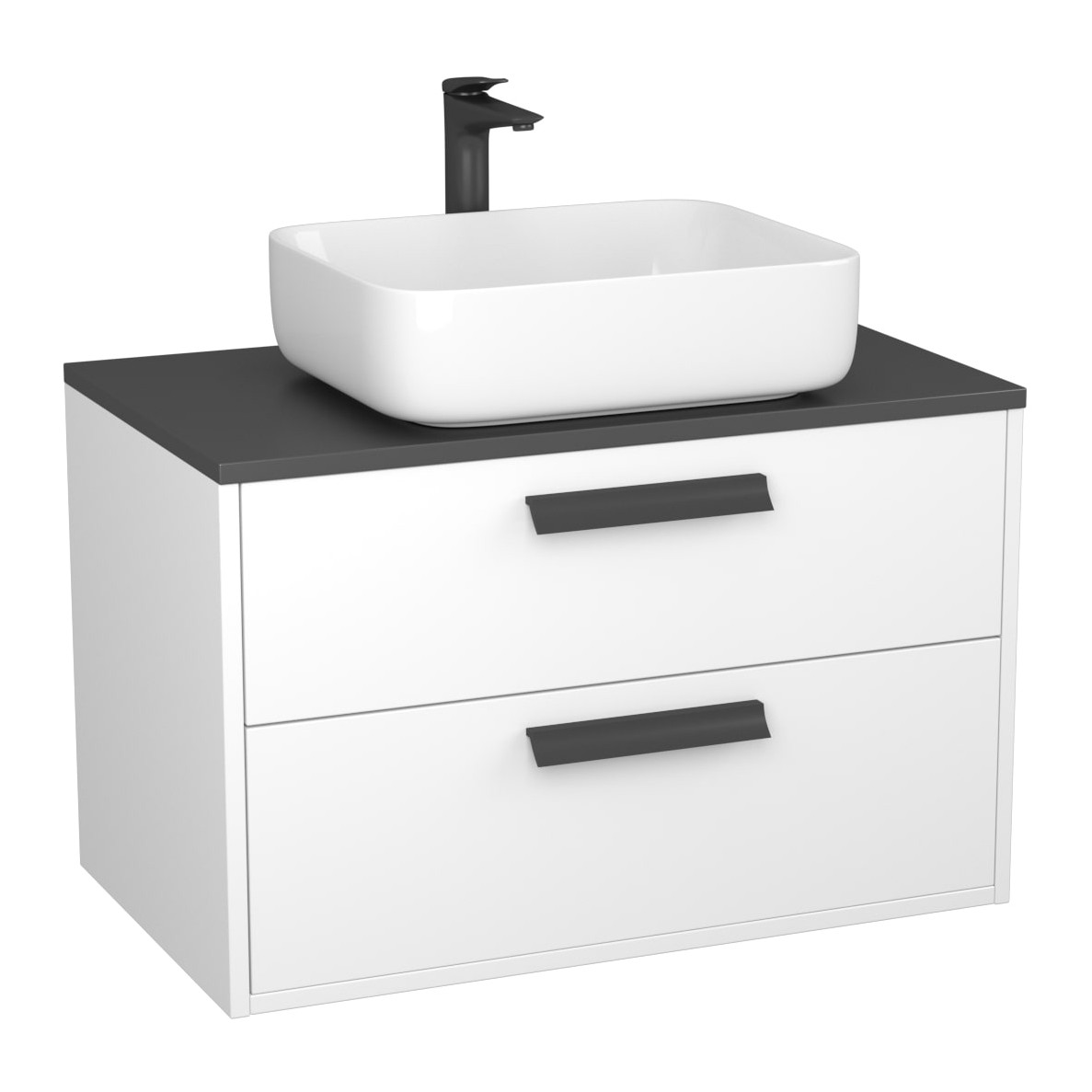 Тумба Orta 80 с накл.ум-к., с 2-мя ящ., подвесная белая