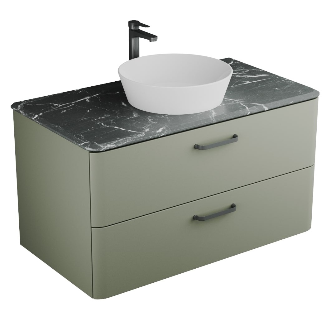 Тумба под умывальник Tibr 100 со столешницей и раковиной, олива