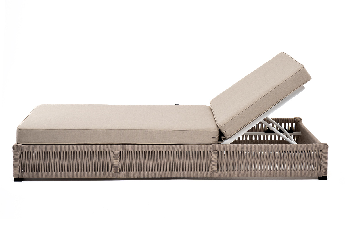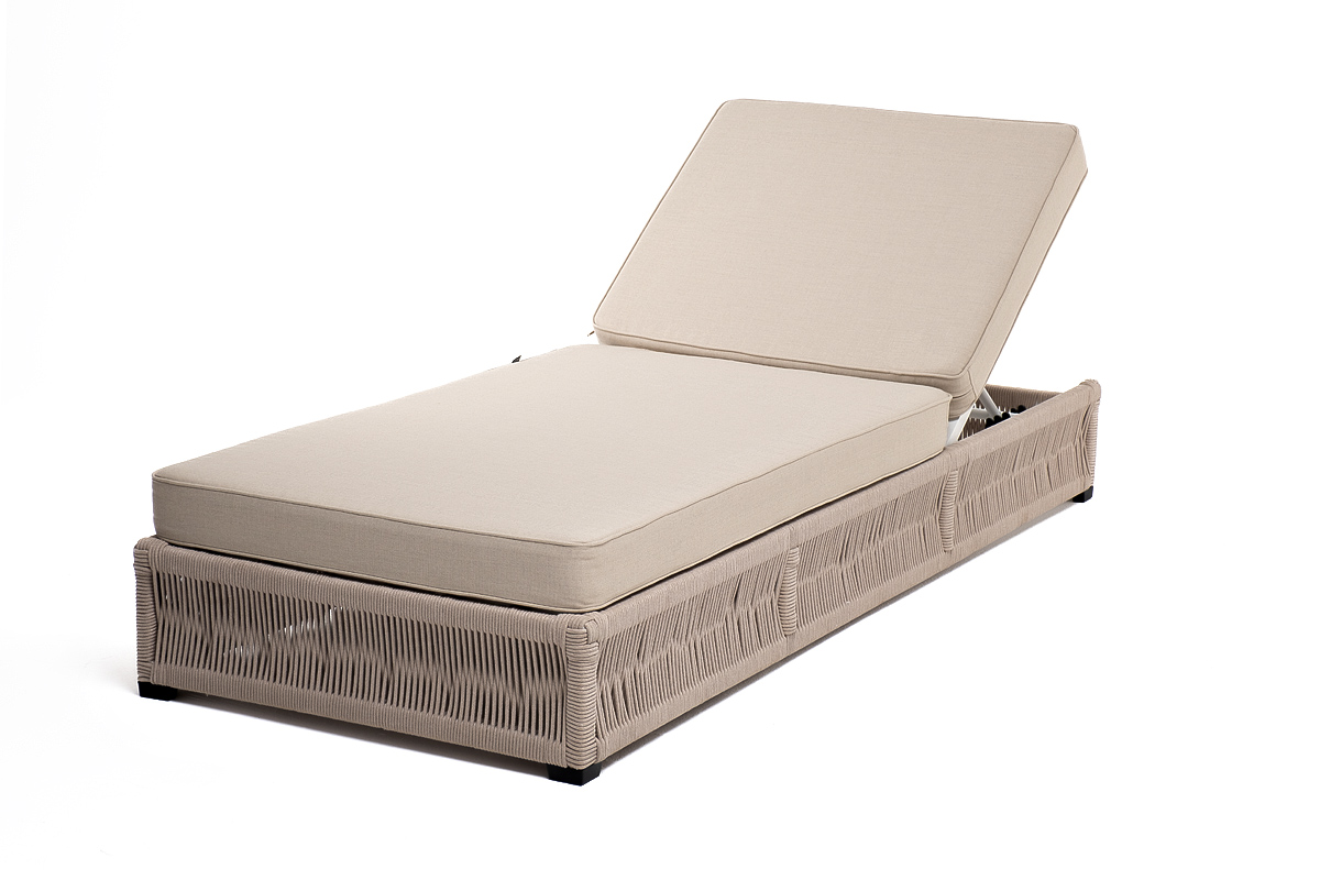 - Шезлонги — раскладные лежаки с регулируемой спинкой в 3-5 положениях. Удобны для загара и отдыха у бассейна. Прочная ротанговая оплётка пропускает воздух и быстро высыхает после дождя. Выдерживают вес до 120 кг.