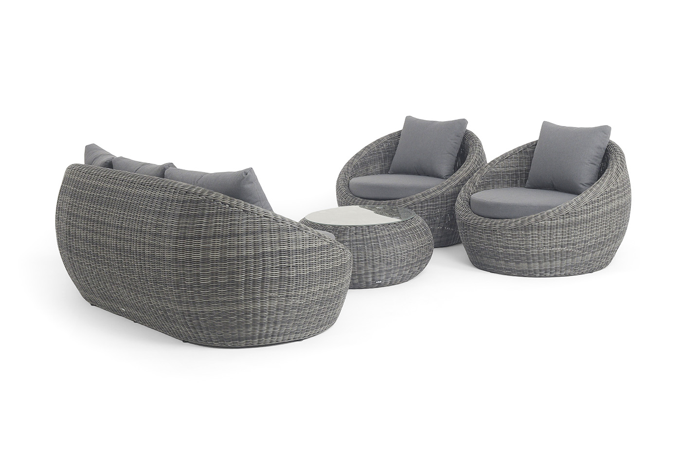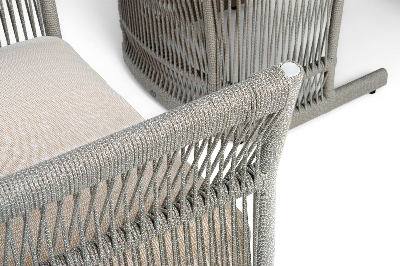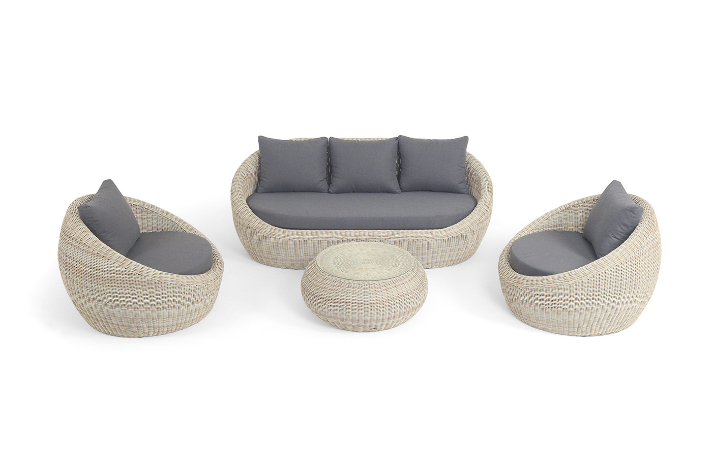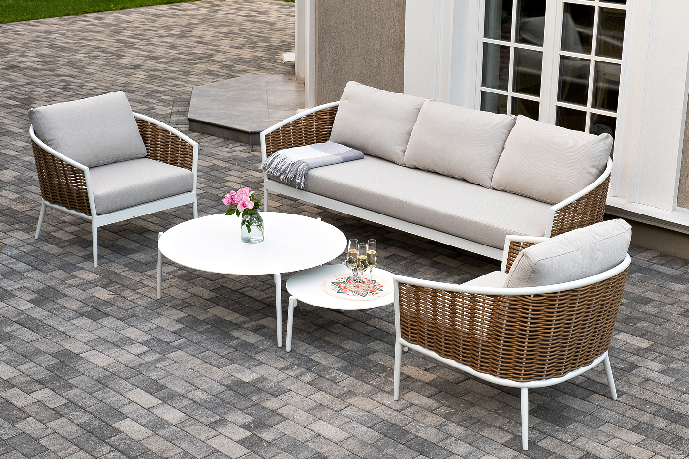 - Лаунж-зоны — готовые комплекты из дивана, кресел и журнального столика. Сбалансированные композиции для 4-8 человек создают уютное пространство для общения. Все элементы выполнены в едином стиле с одинаковым типом плетения и цветом.