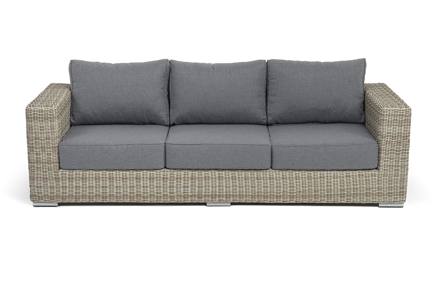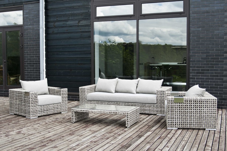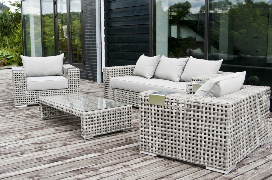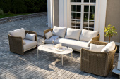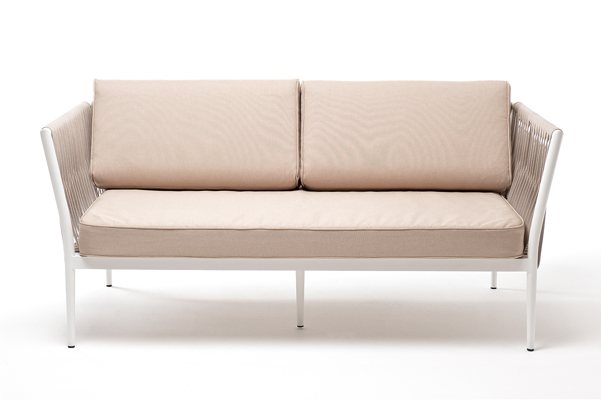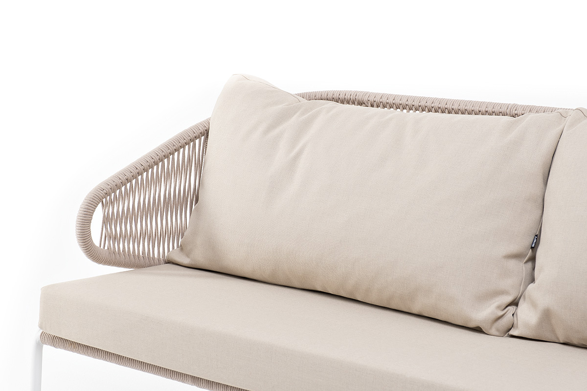 - Диваны — прямые 2-3-местные и угловые модели для террас, веранд и зимних садов. Плетение создаёт изящный дизайн, а мягкие подушки из влагостойких тканей обеспечивают комфорт. Каркас из алюминия выдерживает нагрузку до 150 кг на одно место. Глубина сиденья 65-75 см позволяет удобно расположиться для отдыха.