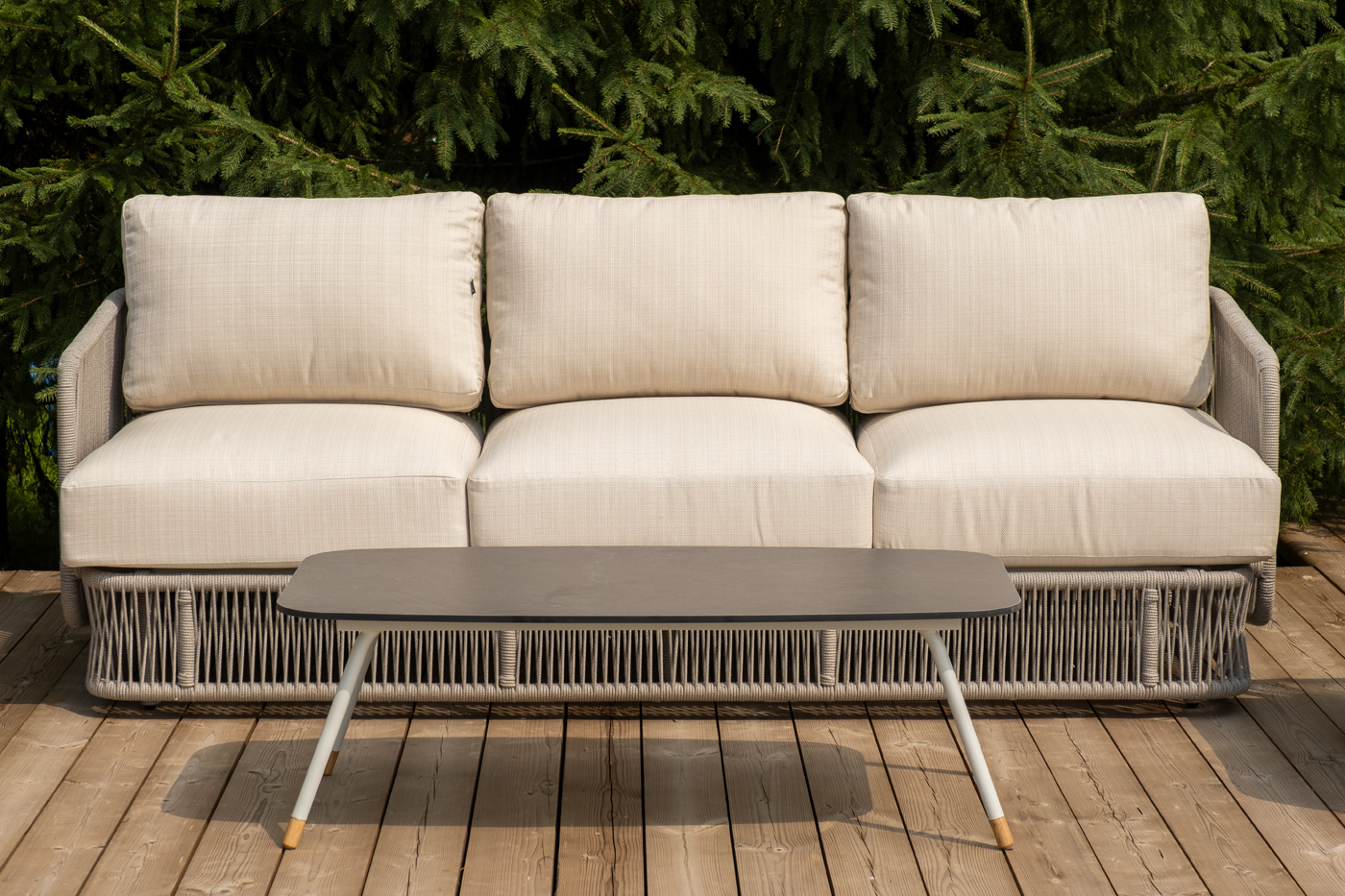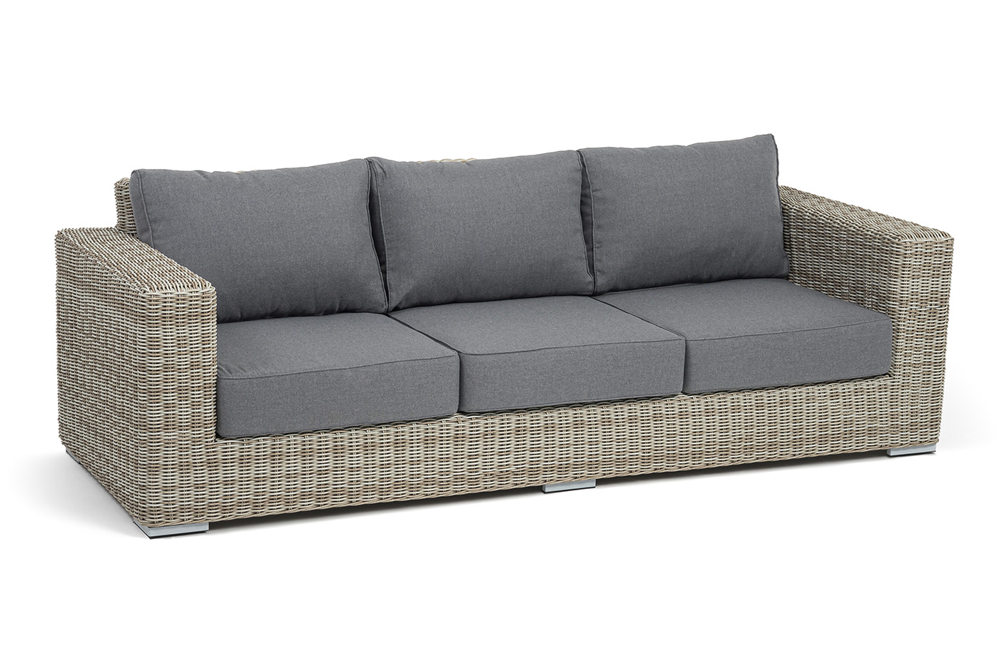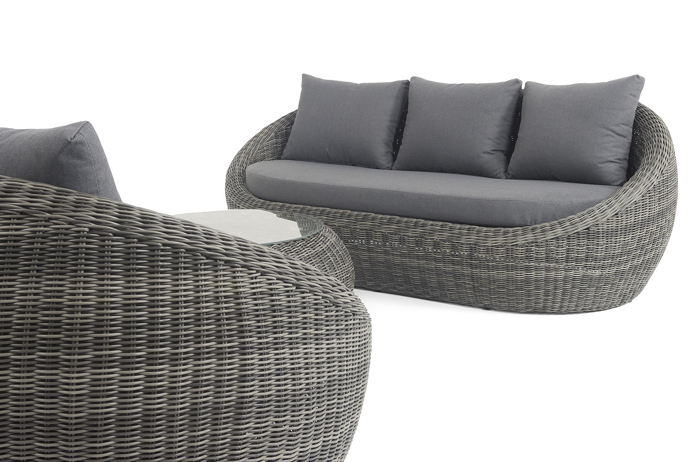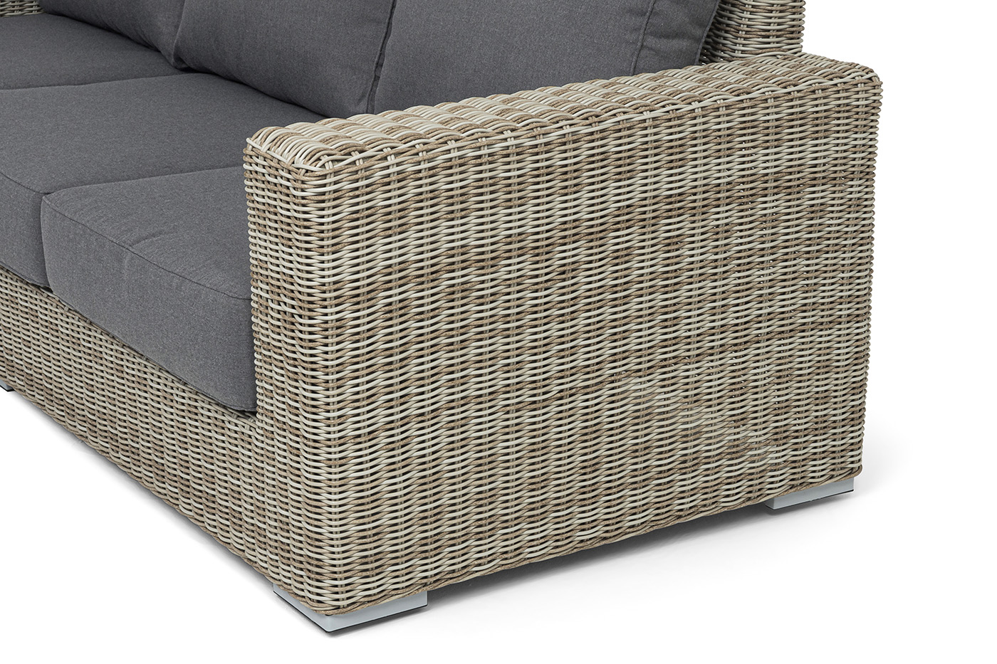 - Диваны — прямые 2-3-местные и угловые модели для террас, веранд и зимних садов. Плетение создаёт изящный дизайн, а мягкие подушки из влагостойких тканей обеспечивают комфорт. Каркас из алюминия выдерживает нагрузку до 150 кг на одно место. Глубина сиденья 65-75 см позволяет удобно расположиться для отдыха.