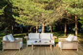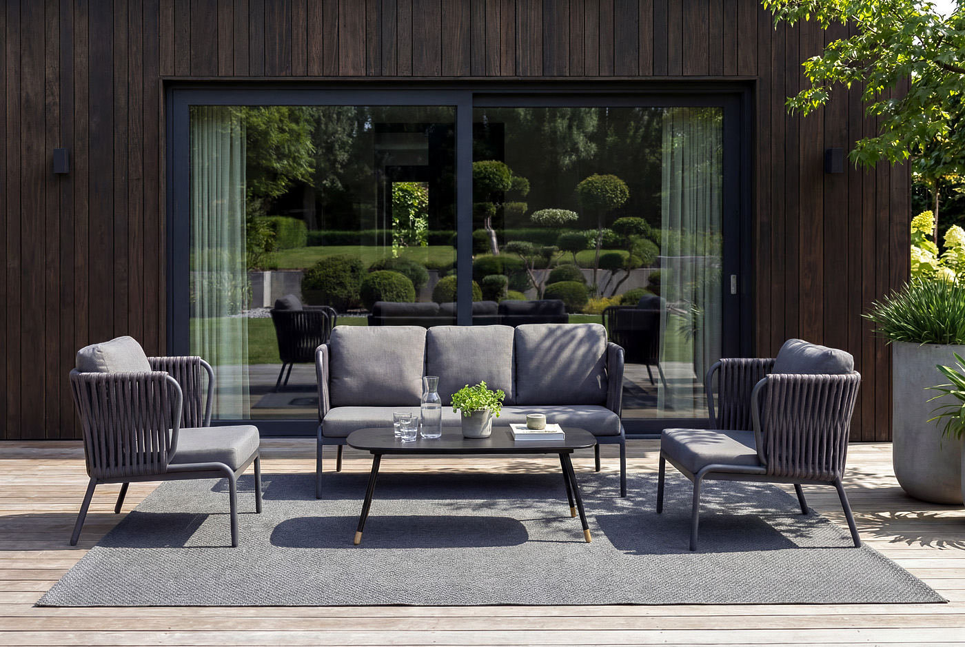- Открытые террасы — диваны, кресла и столы создают комфортную зону отдыха под открытым небом