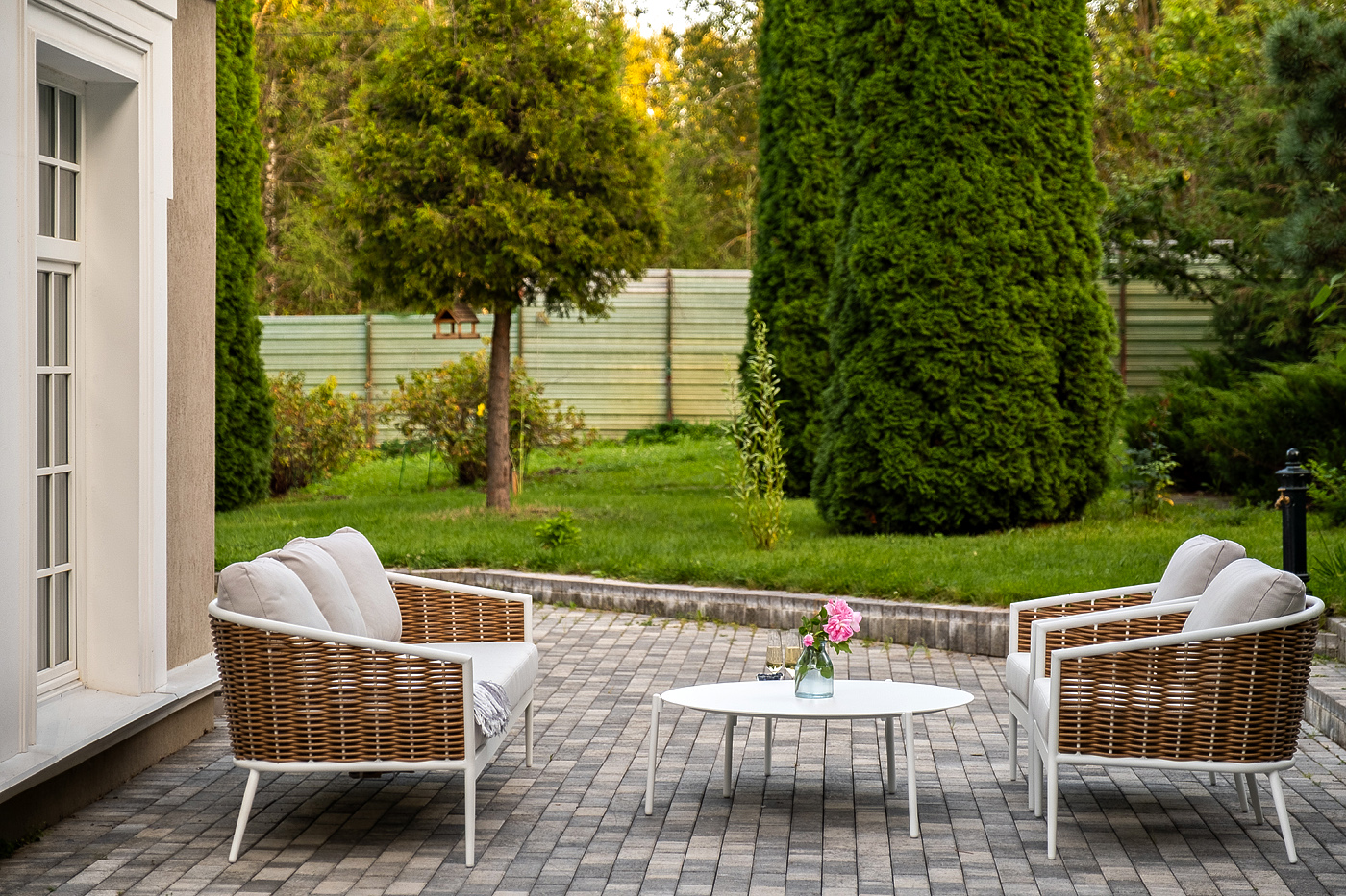 Мебель из искусственного ротанга можно оставлять на улице весь сезон — материал не требует укрытия на зиму и специального хранения.