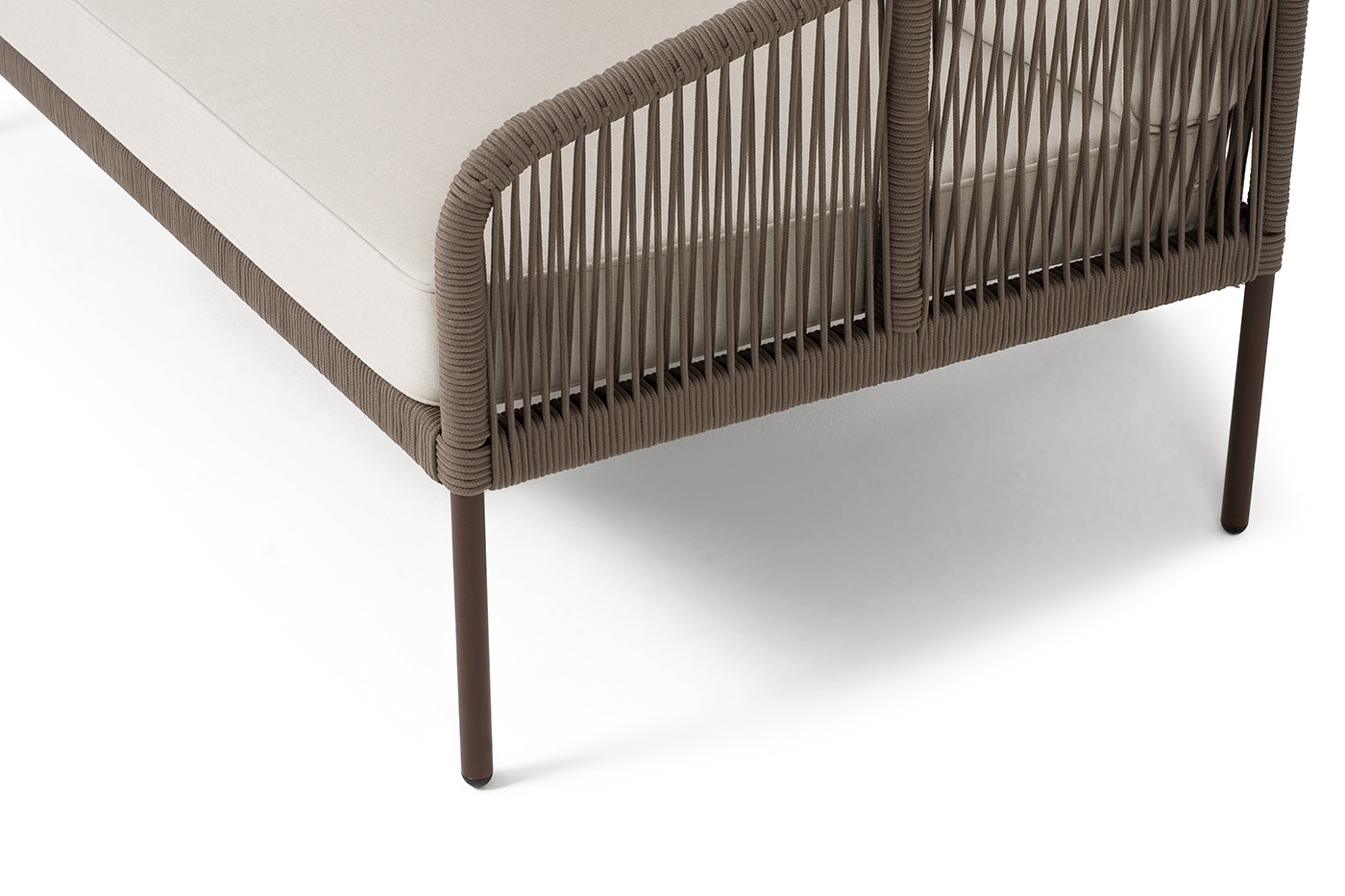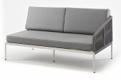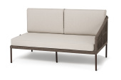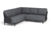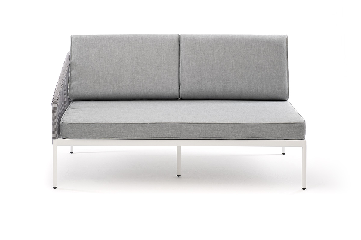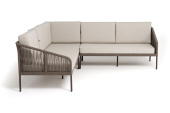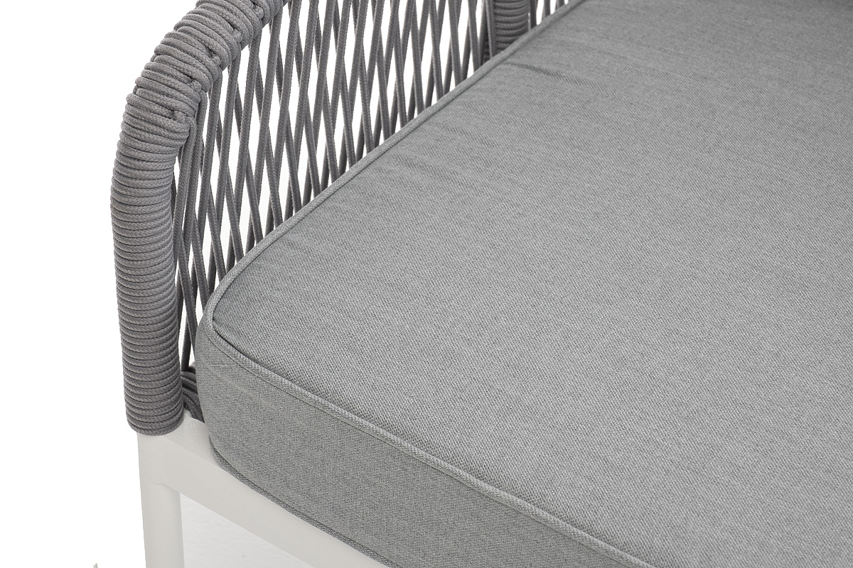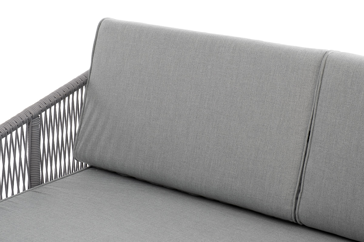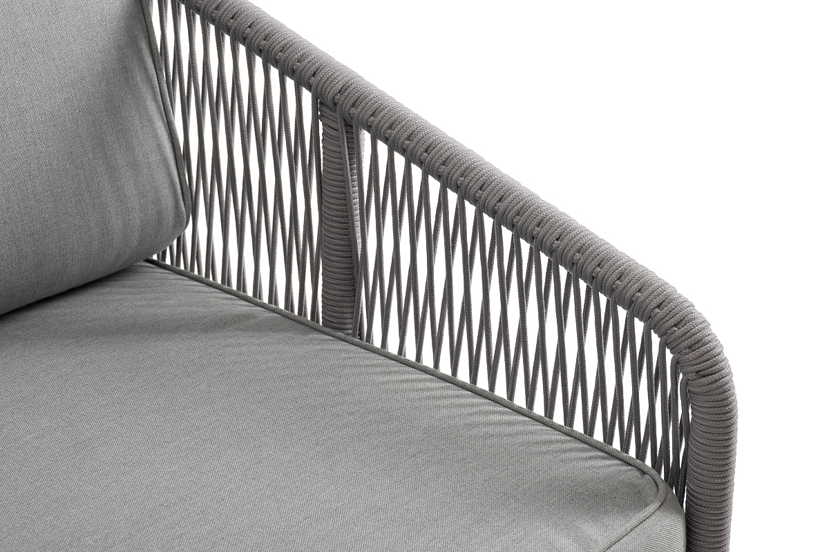 - Диваны — прямые 2-3-местные и угловые модели для террас, веранд и зимних садов. Плетение создаёт изящный дизайн, а мягкие подушки из влагостойких тканей обеспечивают комфорт. Каркас из алюминия выдерживает нагрузку до 150 кг на одно место. Глубина сиденья 65-75 см позволяет удобно расположиться для отдыха.