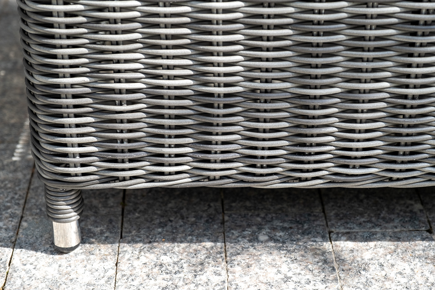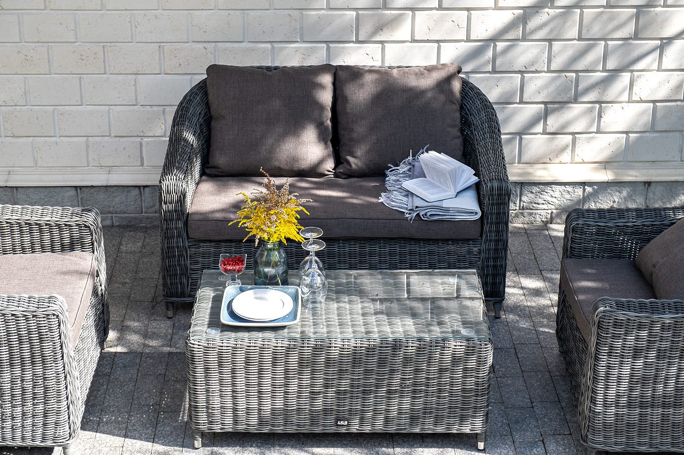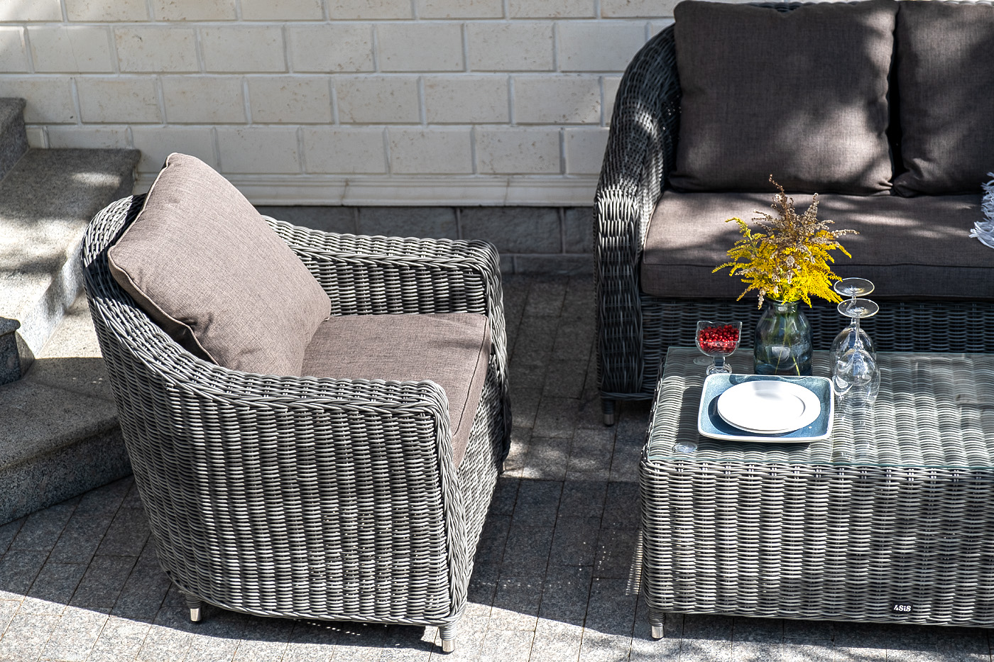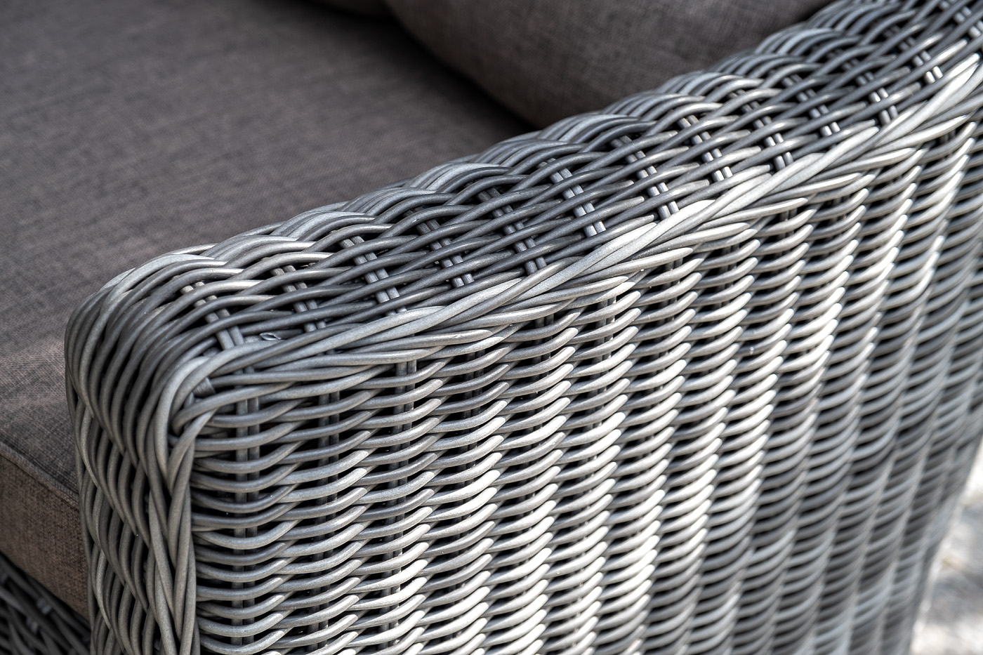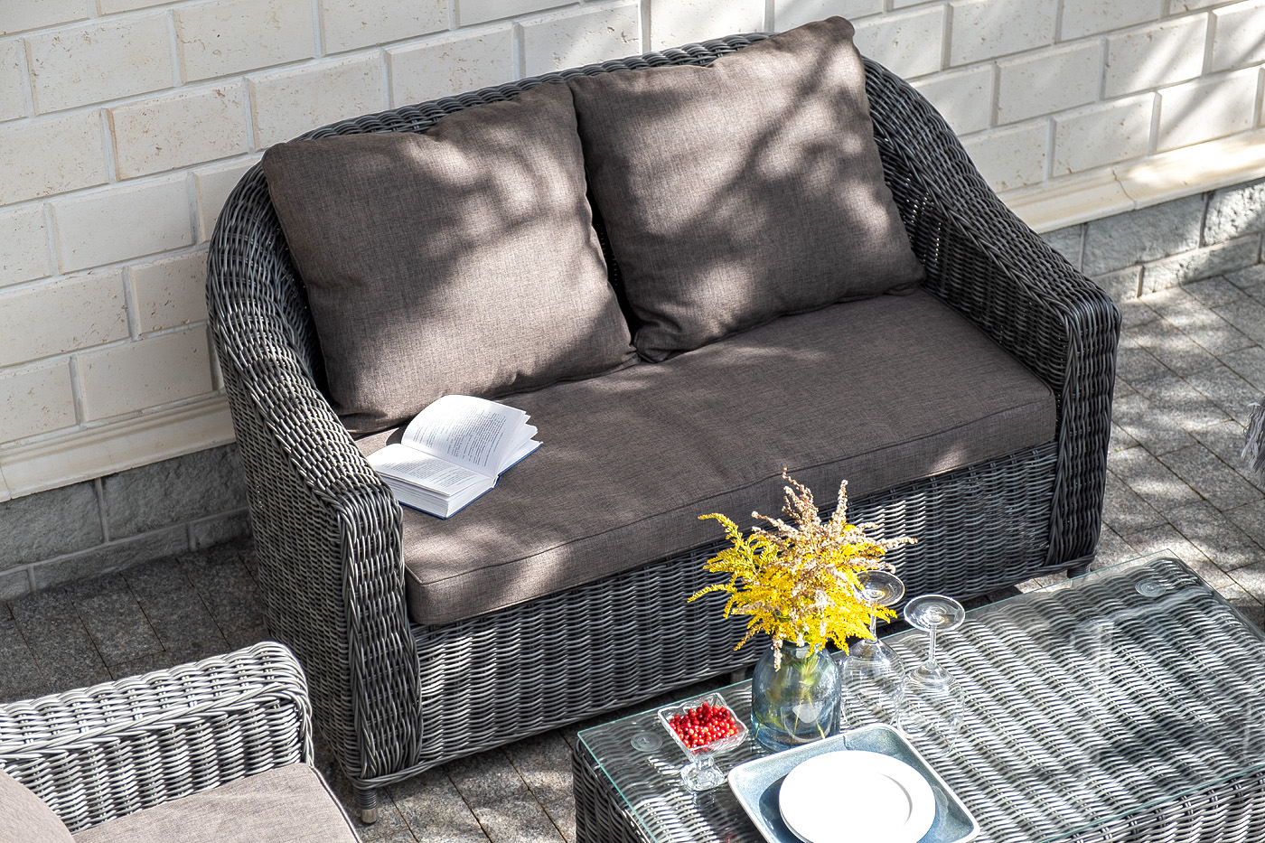 При производстве садового дивана был использован прочный алюминиевый каркас, который вручную оплетен круглым искусственным ротангом.