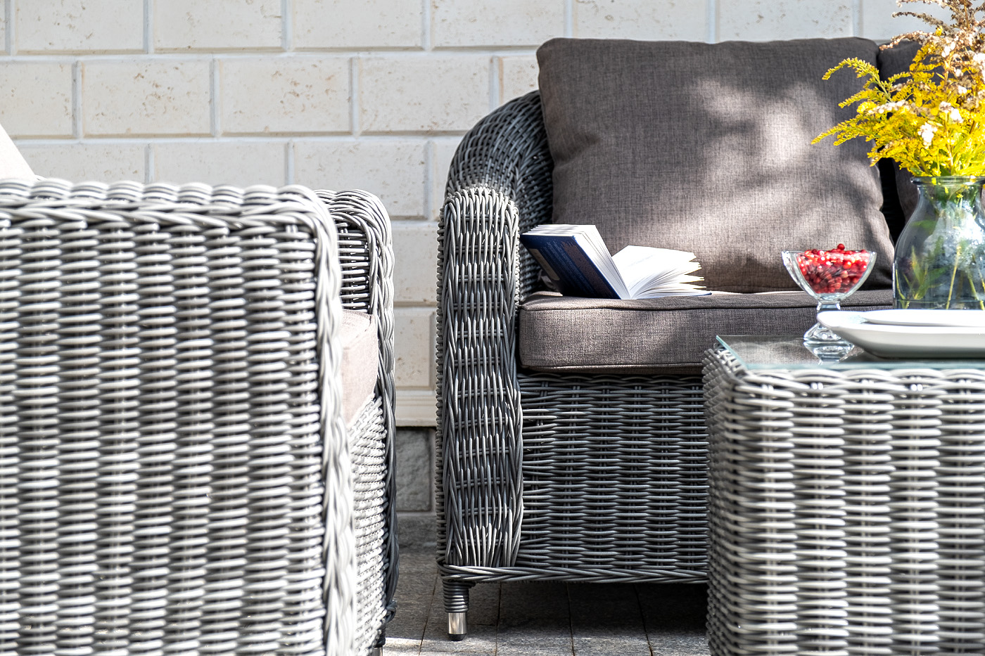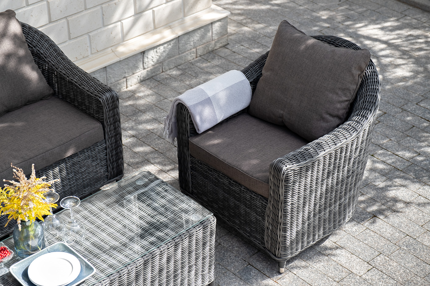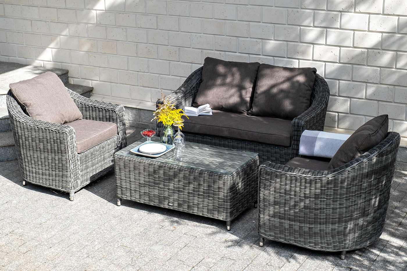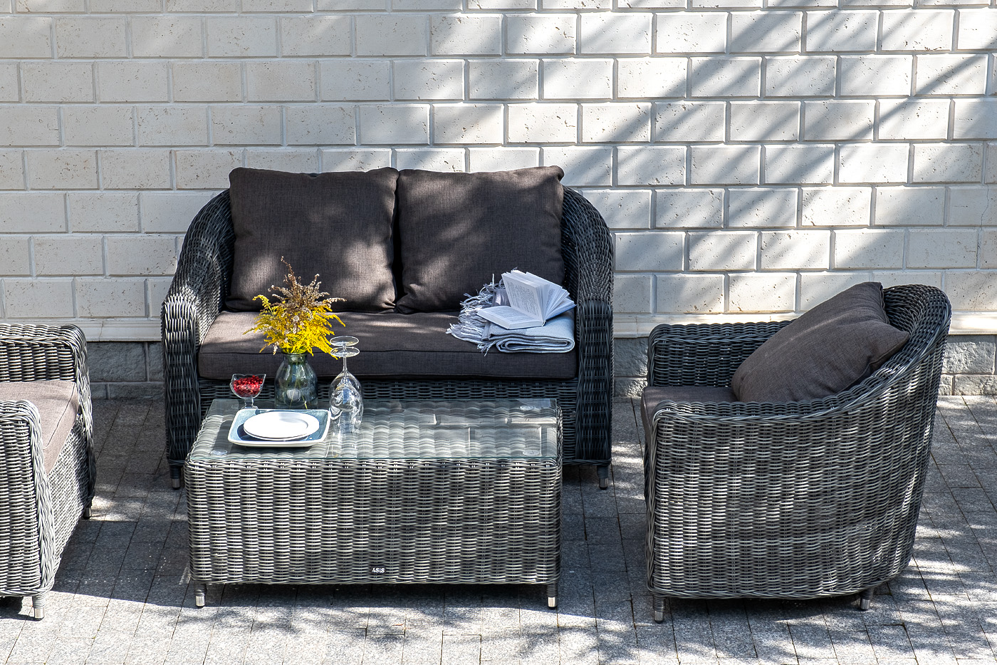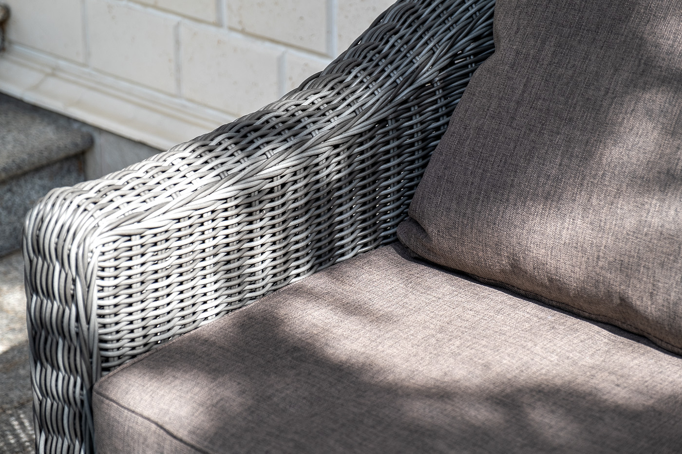 При производстве садового дивана был использован прочный алюминиевый каркас, который вручную оплетен круглым искусственным ротангом.
