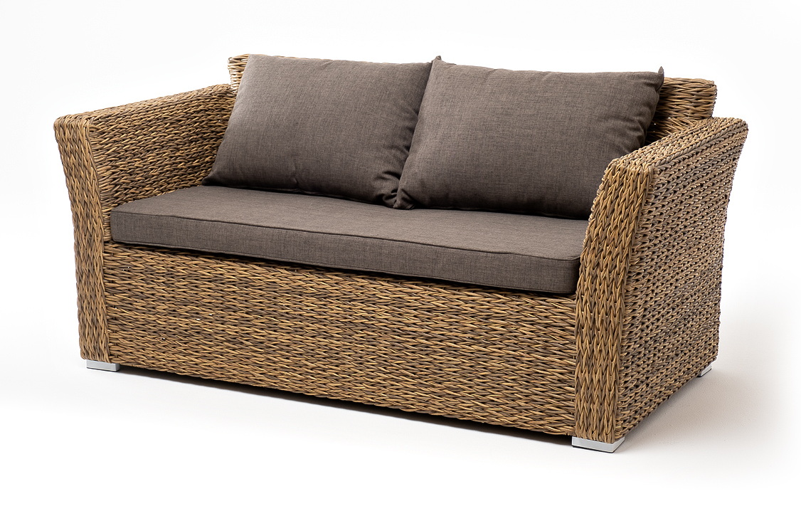 "Капучино" диван из искусственного ротанга (гиацинт) двухместный, цвет соломенный