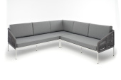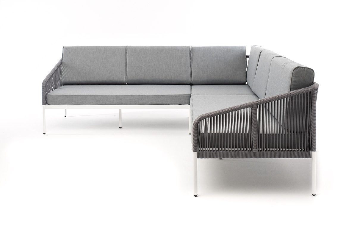 "Канны" диван модульный плетеный из роупа, каркас алюминий белый, роуп светло-серый круглый, ткань светло-серая