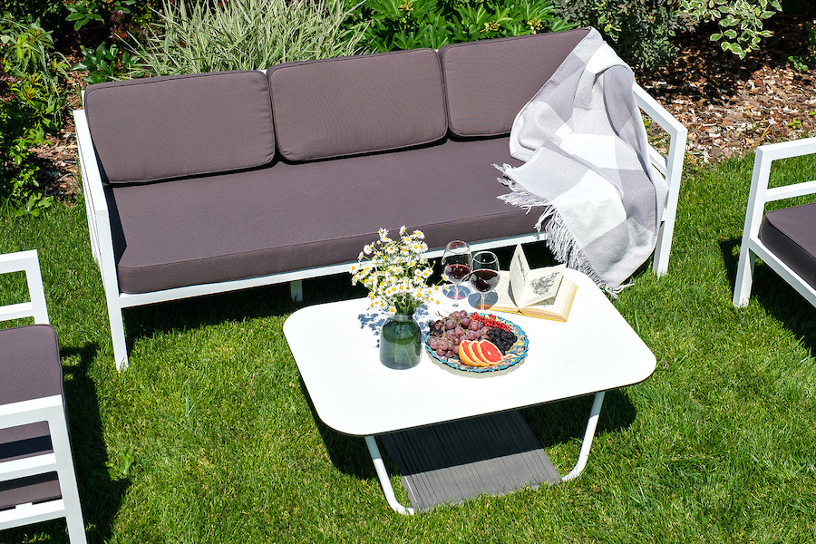 Диван выполнен в современном минималистичном стиле и подойдет для использования как в помещении, так и на открытом пространстве: в саду, на балконе, на летней веранде ресторана или отеля.
