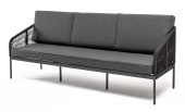 "Канны" диван 3-местный плетеный из роупа, каркас алюминий темно-серый (RAL7024) муар, роуп темно-серый круглый, ткань темно-серая 027