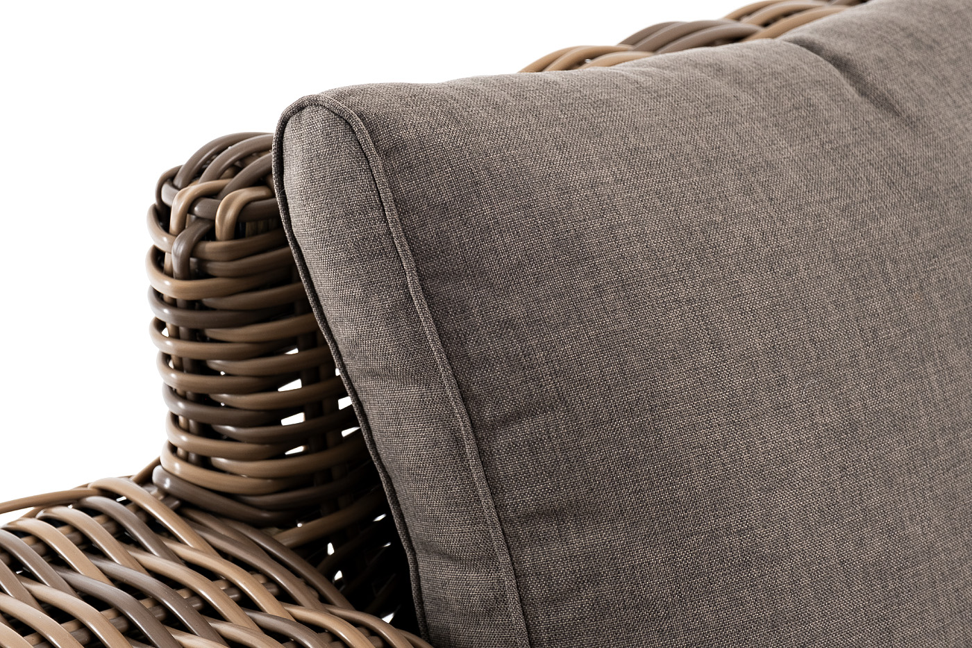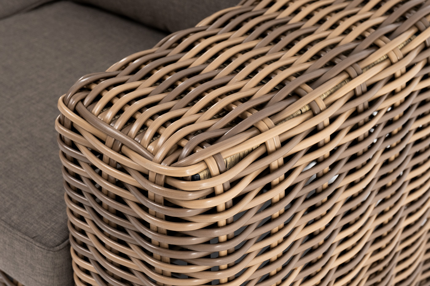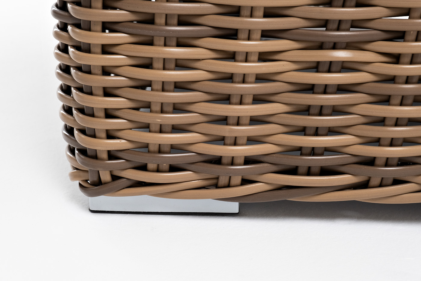 Ручное круглое плетение является основным декоративным элементом мебели. Оно выполнено из искусственного ротанга в соломенном цвете.
