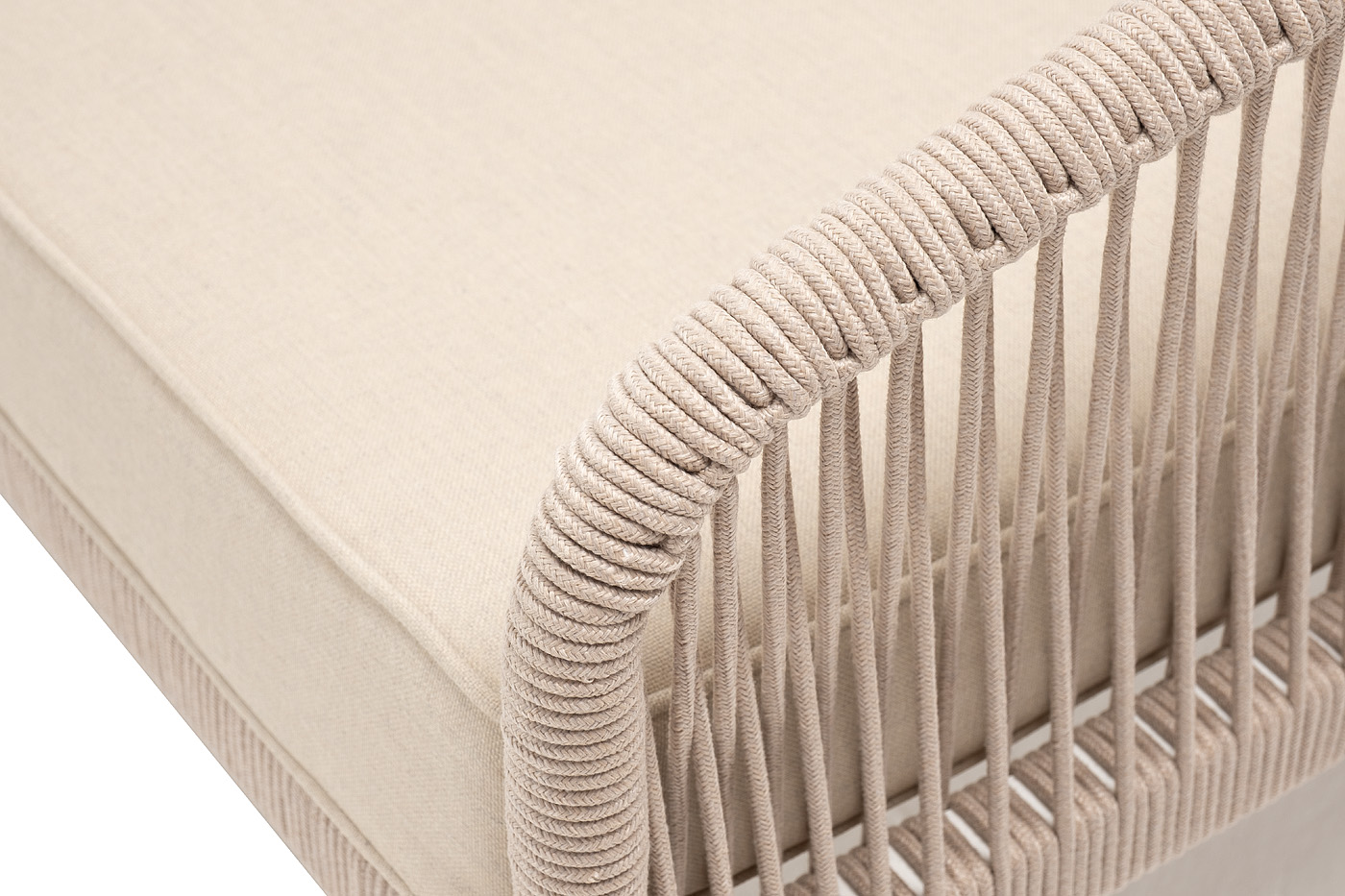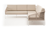 "Канны" диван модульный плетеный из роупа, каркас алюминий белый, роуп бежевый круглый, ткань бежевая 035
