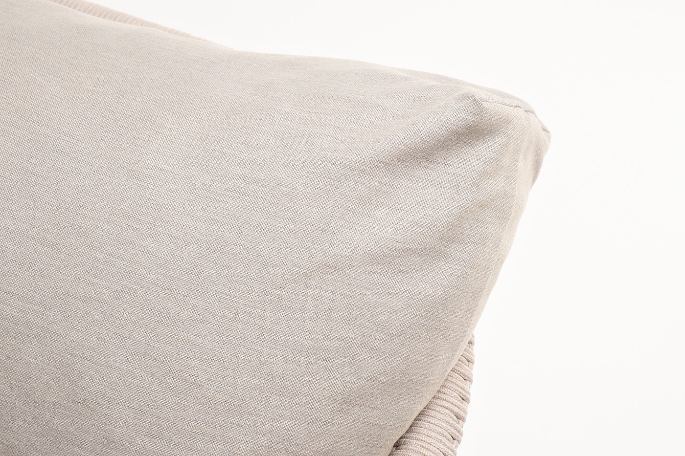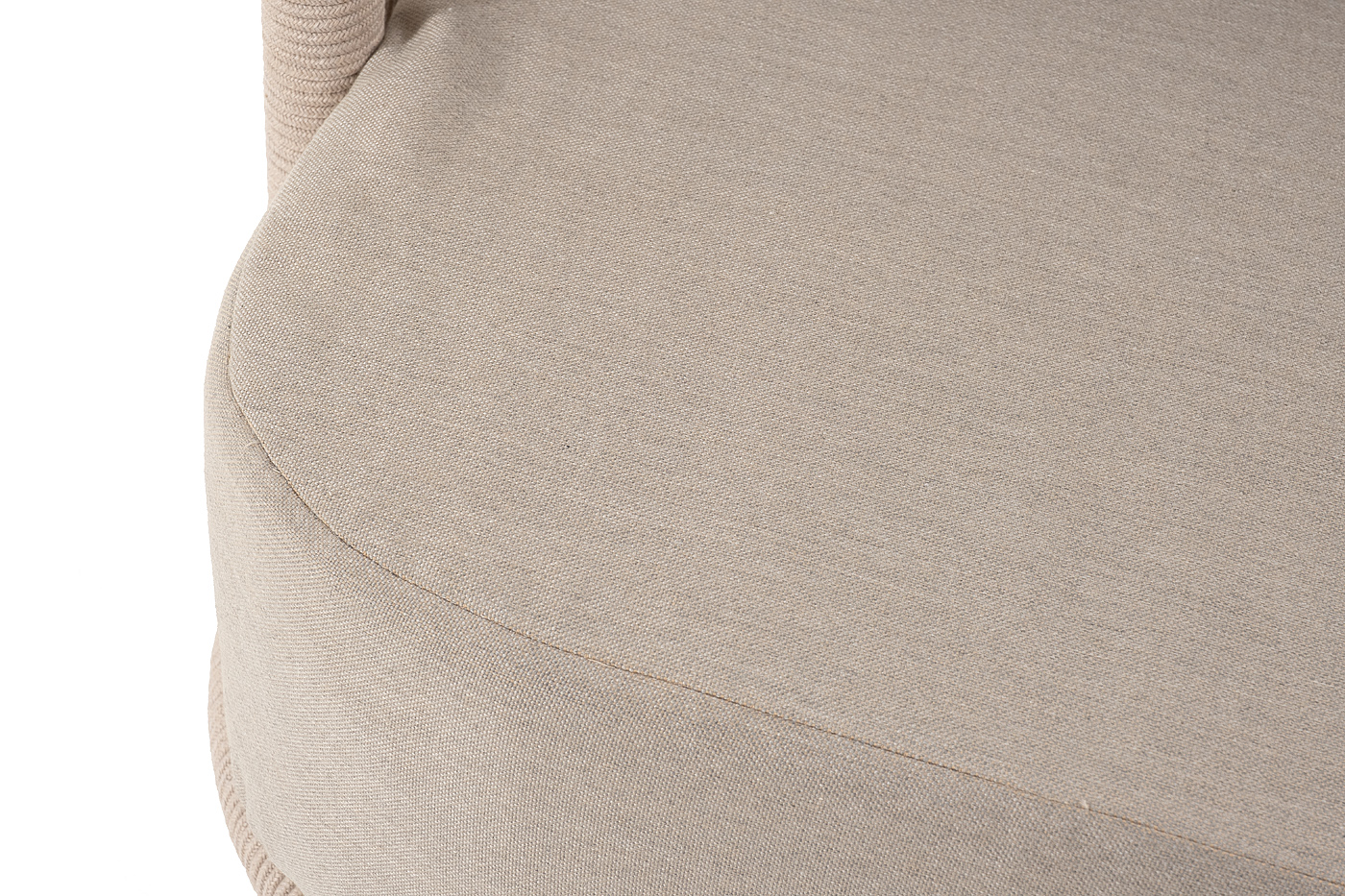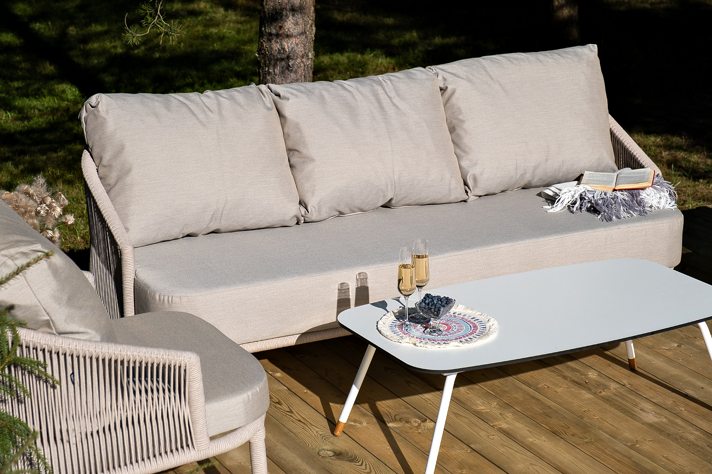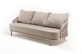 "Верона" диван 3-местный плетеный из роупа, каркас алюминий белый муар, роуп бежевый круглый, ткань бежевая 052