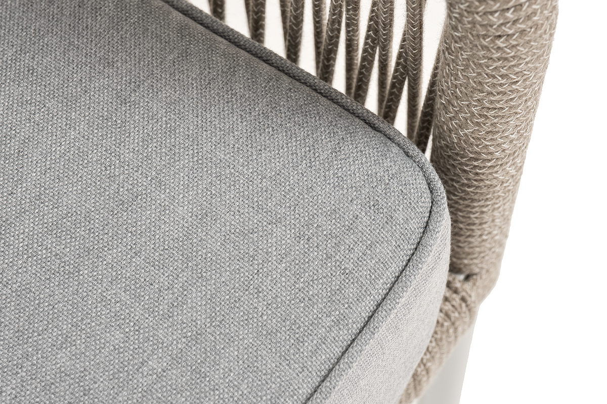 "Канны" диван 2-местный плетеный из роупа, каркас алюминий светло-серый (RAL7035) шагрень, роуп серый меланж круглый, ткань светло-серая