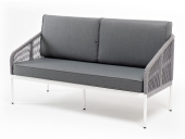 "Канны" диван 2-местный плетеный из роупа, каркас алюминий белый муар, роуп светло-серый круглый, ткань серая 017