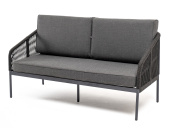 "Канны" диван 2-местный плетеный из роупа, каркас алюминий темно-серый (RAL7024) муар, роуп темно-серый круглый, ткань темно-серая 027, выс. посадки 45