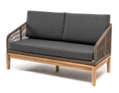 "Канны" диван 2-местный плетеный из роупа, основание дуб, роуп коричневый круглый, ткань темно-серая 027