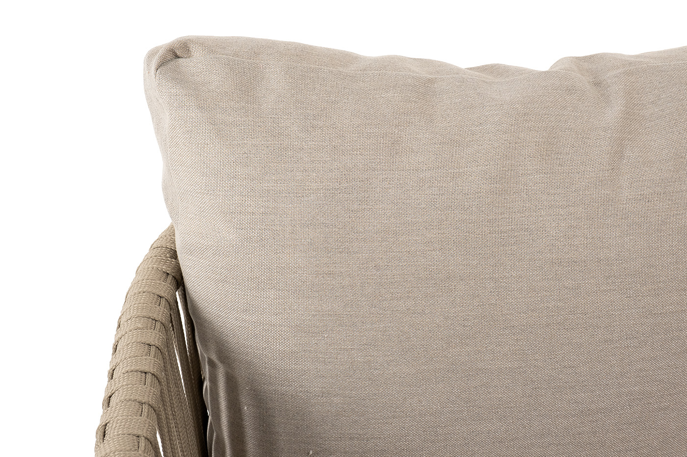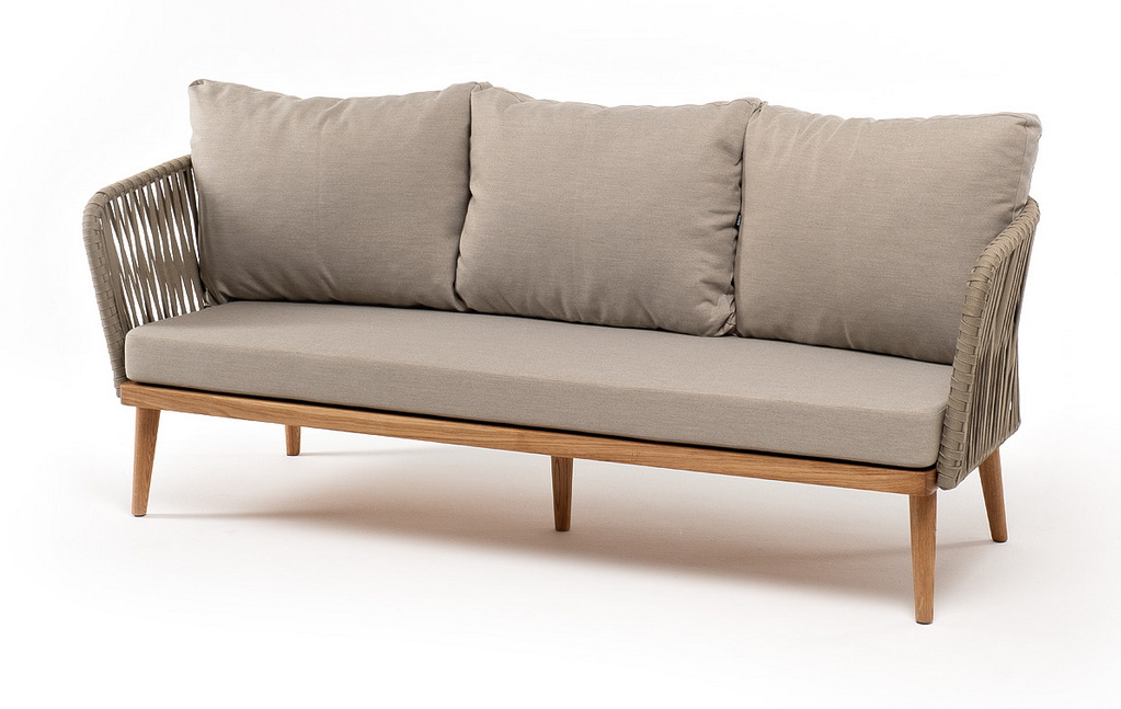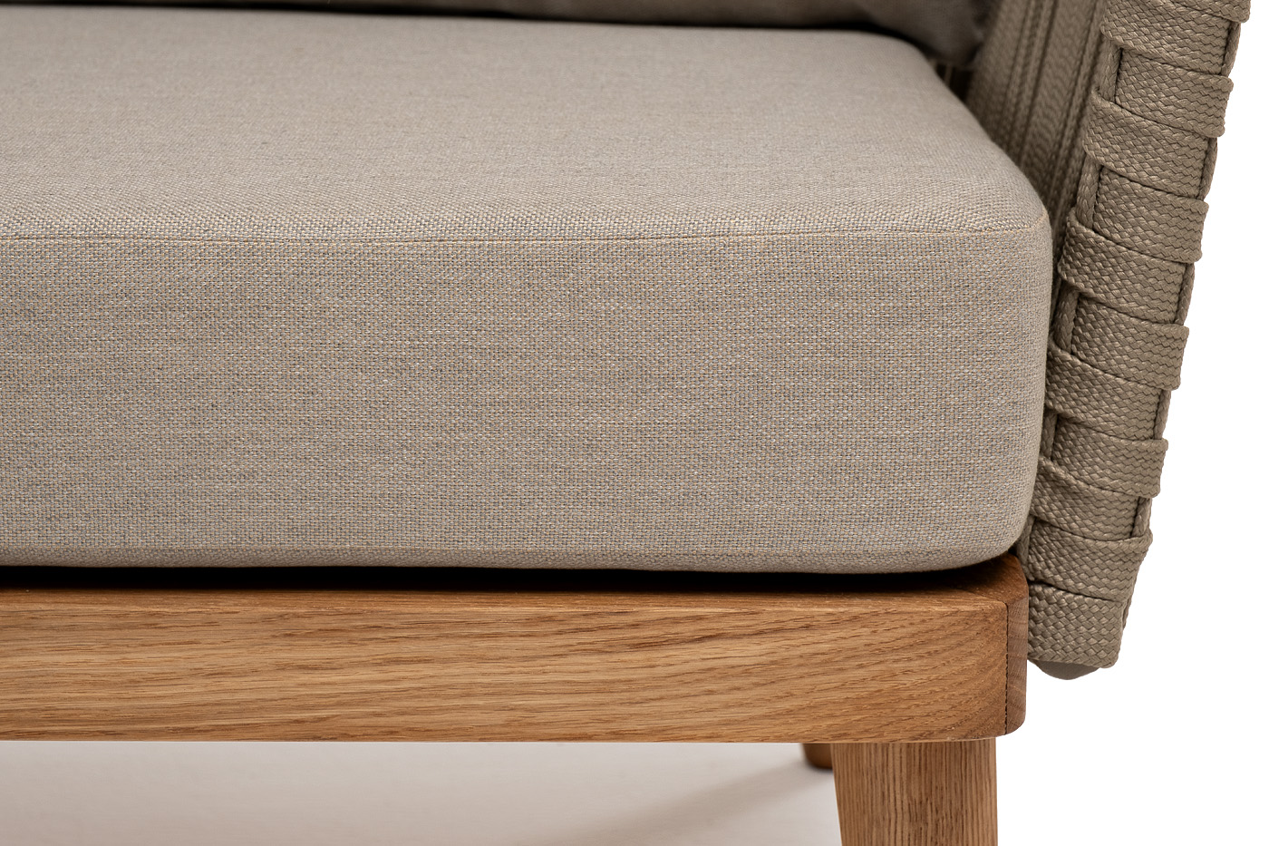 "Мальорка" диван 3-местный плетеный из роупа, основание дуб, роуп серо-коричневый 23мм, ткань бежевая 15052