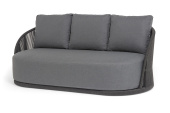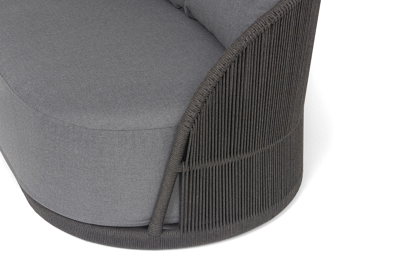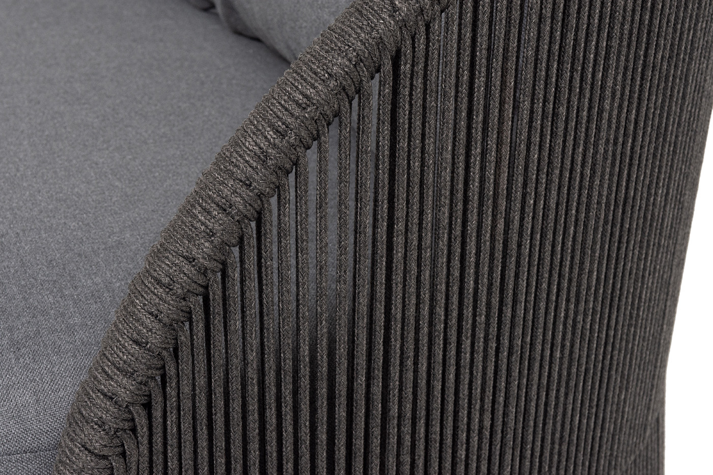 "Монтелла" диван 3-местный плетеный из роупа, каркас алюминий темно-серый (RAL7024) муар, роуп темно-серый круглый, ткань темно-серая 027