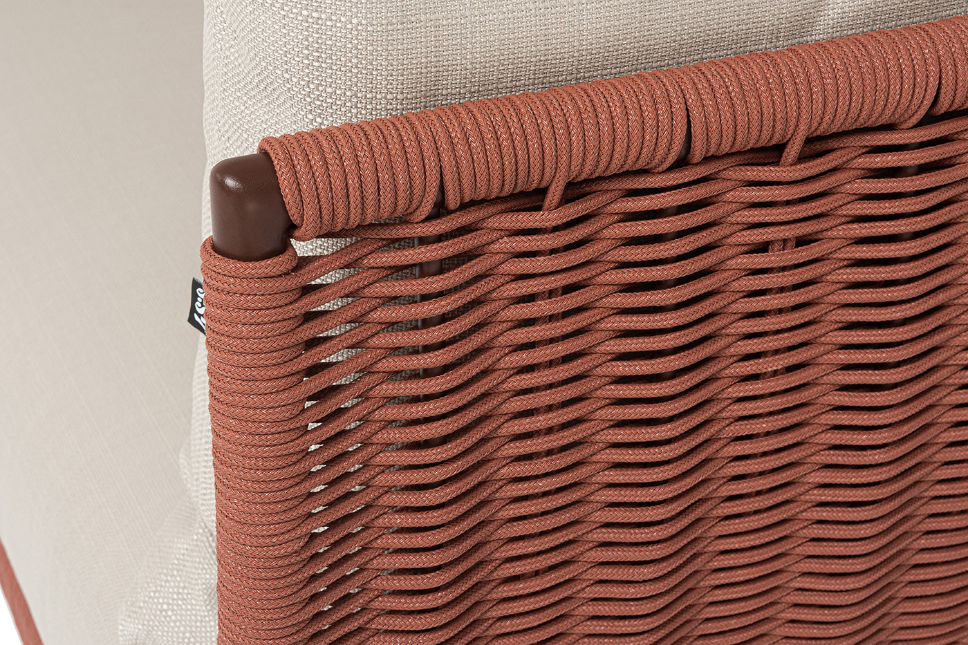 "Фиджи" диван 3-местный плетеный из роупа, каркас алюминий коричневый (RAL8016) муар, роуп красный (8372) круглый tex, ткань Mossle бежевая