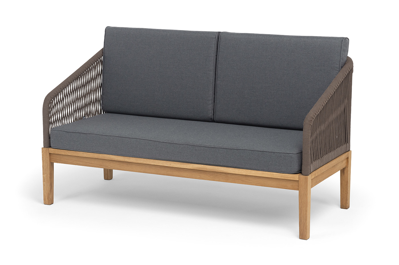 "Канны" диван 2-местный плетеный из роупа, основание дуб, роуп коричневый круглый, ткань темно-серая 027 NEW