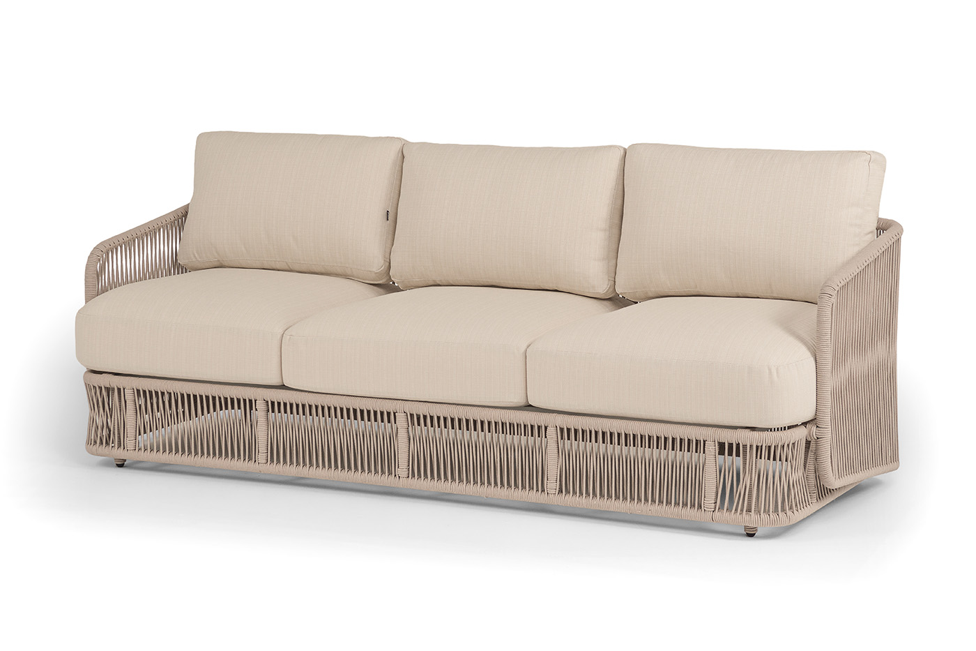 "Альбано" диван 3-местный плетеный из роупа, каркас алюминий светло-серый (RAL7035) муар, роуп бежевый круглый, ткань Mossle светло-бежевая