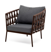 "Диего" кресло плетеное из роупа, каркас алюминий коричневый (RAL8016) шагрень, роуп коричневый круглый, ткань темно-серая 019