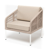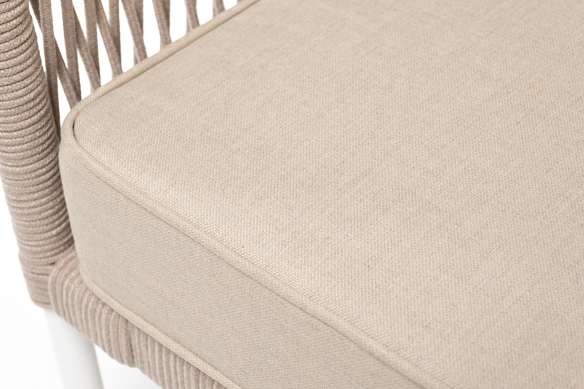 "Канны" кресло плетеное из роупа, каркас алюминий белый, муар, роуп бежевый круглый, ткань бежевая 035