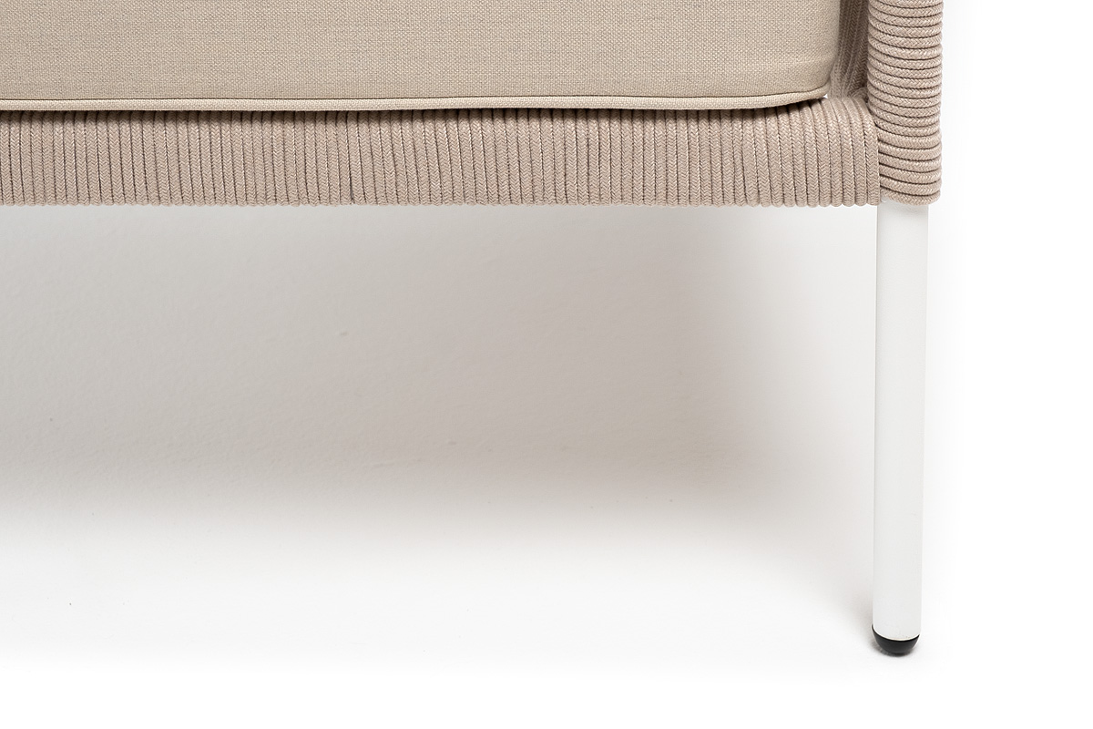 Приятное дополнение − подушки со съёмными чехлами аналогичного бежевого оттенка из влагоотталкивающей ткани, устойчивой к ультрафиолетовым лучам и неблагоприятным атмосферным воздействиям.