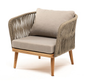 "Мальорка" кресло плетеное из роупа, основание дуб, роуп серо-коричневый 23мм, ткань бежевая 052
