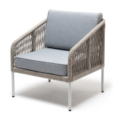 "Канны" кресло плетеное из роупа, каркас алюминий светло-серый (RAL7035) муар, роуп серый меланж круглый, ткань светло-серая