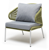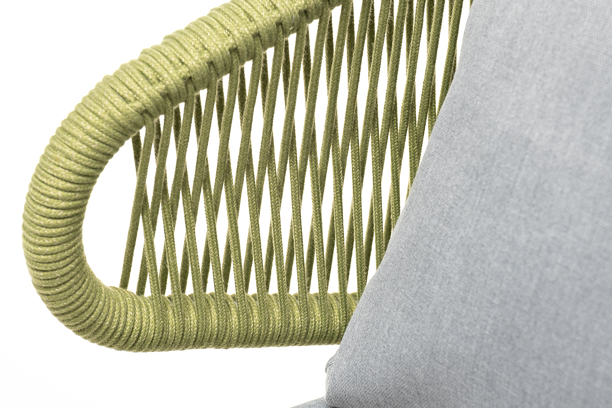 "Милан" кресло плетеное из роупа, каркас алюминий светло-серый (RAL7035) муар, роуп салатовый меланж круглый, ткань светло-серая