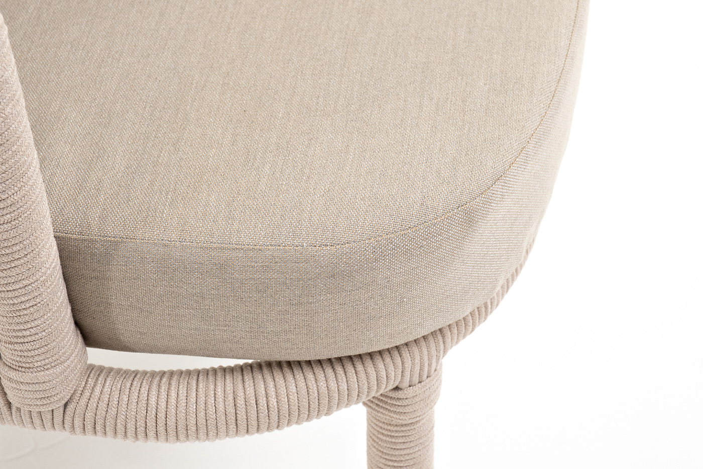 "Верона" кресло плетеное из роупа, каркас алюминий белый муар, роуп бежевый круглый, ткань бежевая 15052
