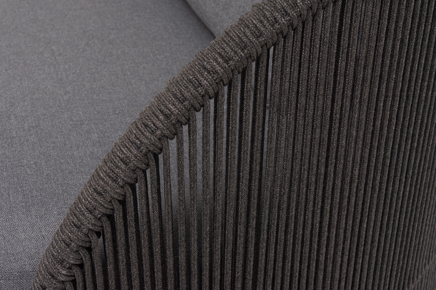 "Монтелла" кресло плетеное из роупа, каркас алюминий темно-серый (RAL7024) муар, роуп темно-серый круглый, ткань темно-серая 027