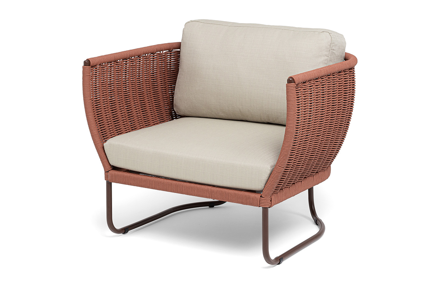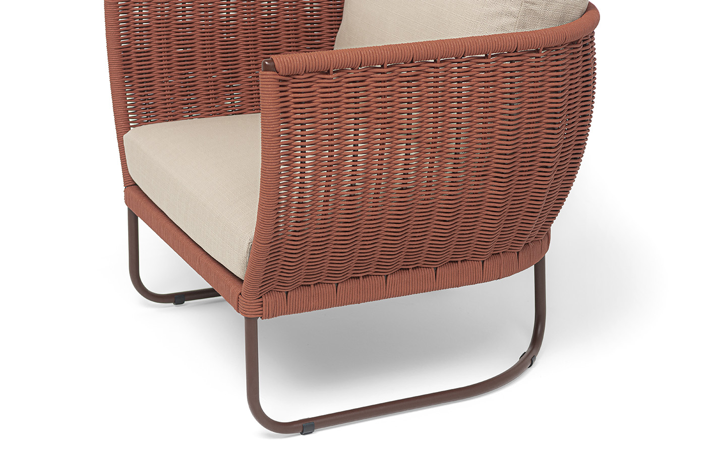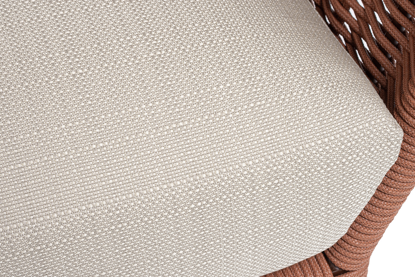 "Фиджи" кресло плетеное из роупа, каркас алюминий коричневый (RAL8016) муар, роуп красный (8372) круглый tex, ткань Mossle бежевая
