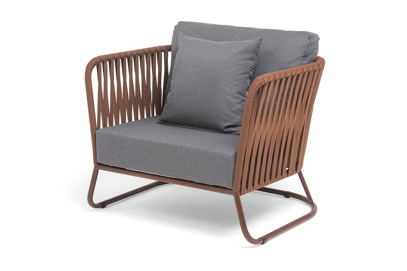 "Багамы" кресло плетеное из роупа, каркас алюминий коричневый (RAL8016) муар, роуп BZ23-ED31, ткань темно-серая 027