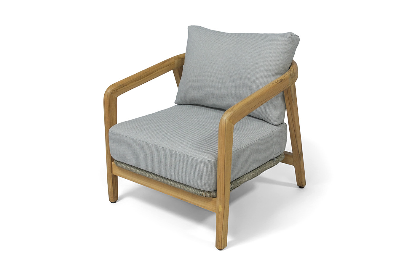 Каркас выполнен из тика — благородной древесины, известной своей прочностью, устойчивостью к внешним воздействиям и изысканной текстурой. Тёплый древесный оттенок подчёркивает природную эстетику мебели.