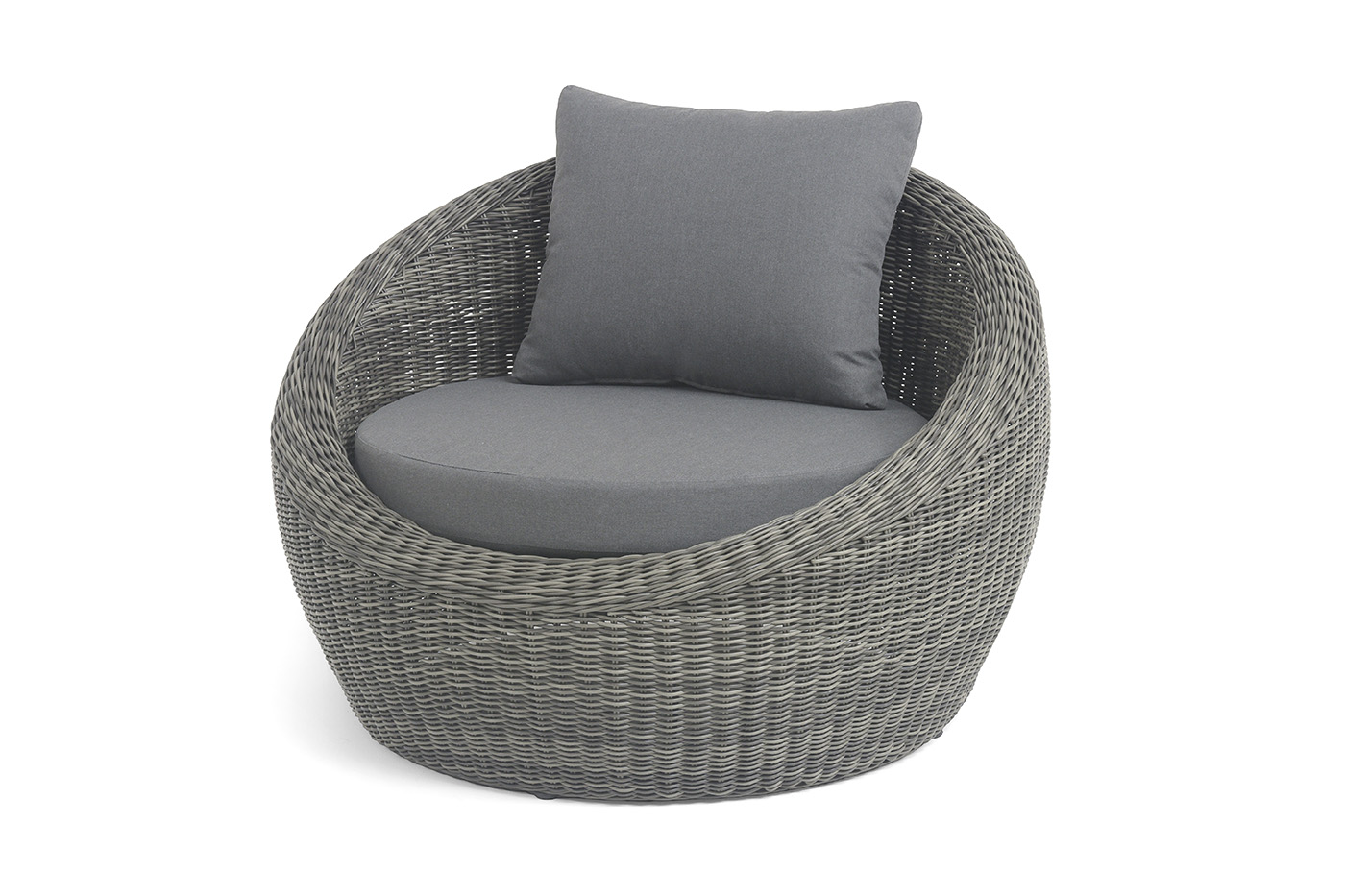 Надежность и износостойкость мебели гарантирует каркас, который сделан из качественного алюминия. Ее дополняет ручное плетение, при изготовлении которого используется искусственный ротанг. Представлена модель в графитовом цвете.
