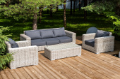 "Канны" лаунж-зона 4-местная из роупа со столиком "Канны" (серый гранит), основание дуб, роуп коричневый