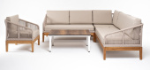 "Канны" лаунж-зона 4-местная из роупа со столом "Гранада" (серый гранит), основание дуб, роуп коричневый, ткань бежевая