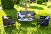 "Диего" лаунж-зона 4-местная плетеная из роупа (веревки), каркас алюминиевый темно-серый, роуп темно-серый