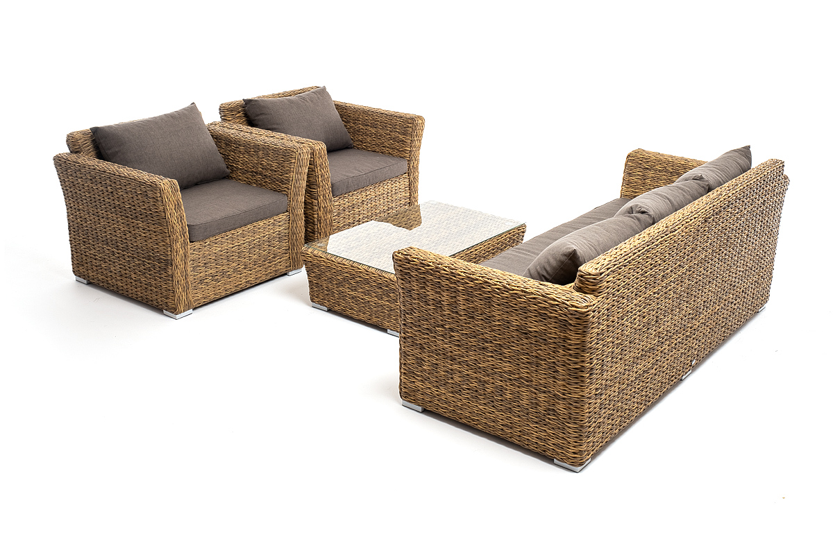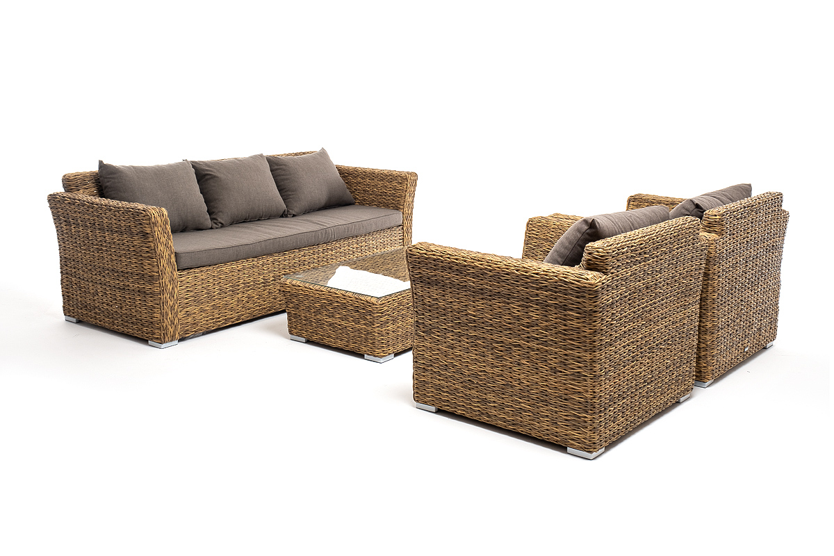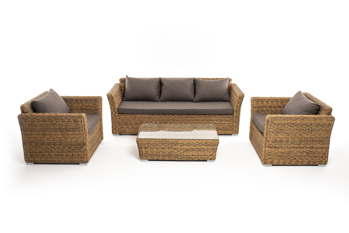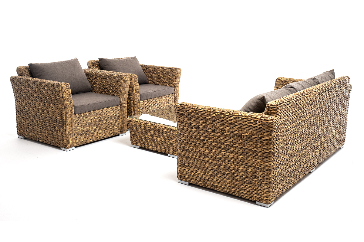 "Капучино" диван из искусственного ротанга (гиацинт) трехместный, цвет соломенный 1шт. 2 220Х865Х815, "Капучино" кресло из искусственного ротанга (гиацинт), цвет соломенный 2шт. 1 040Х865Х815, "Капучино" журнальный столик из искусственного ротанга (гиацинт), цвет соломенный 1шт. 1 100Х660Х340,