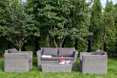 Прочный алюминиевый каркас усиливает устойчивость мебели. Его дополняет плетение в сером цвете, которое представлено из искусственного ротанга вида "гиацинт".