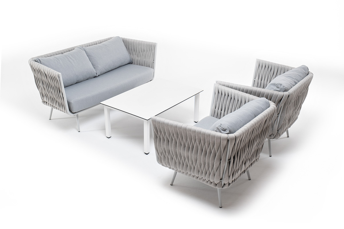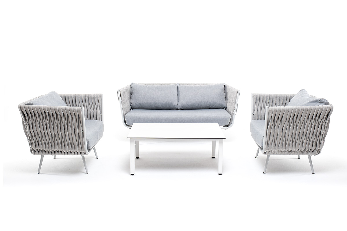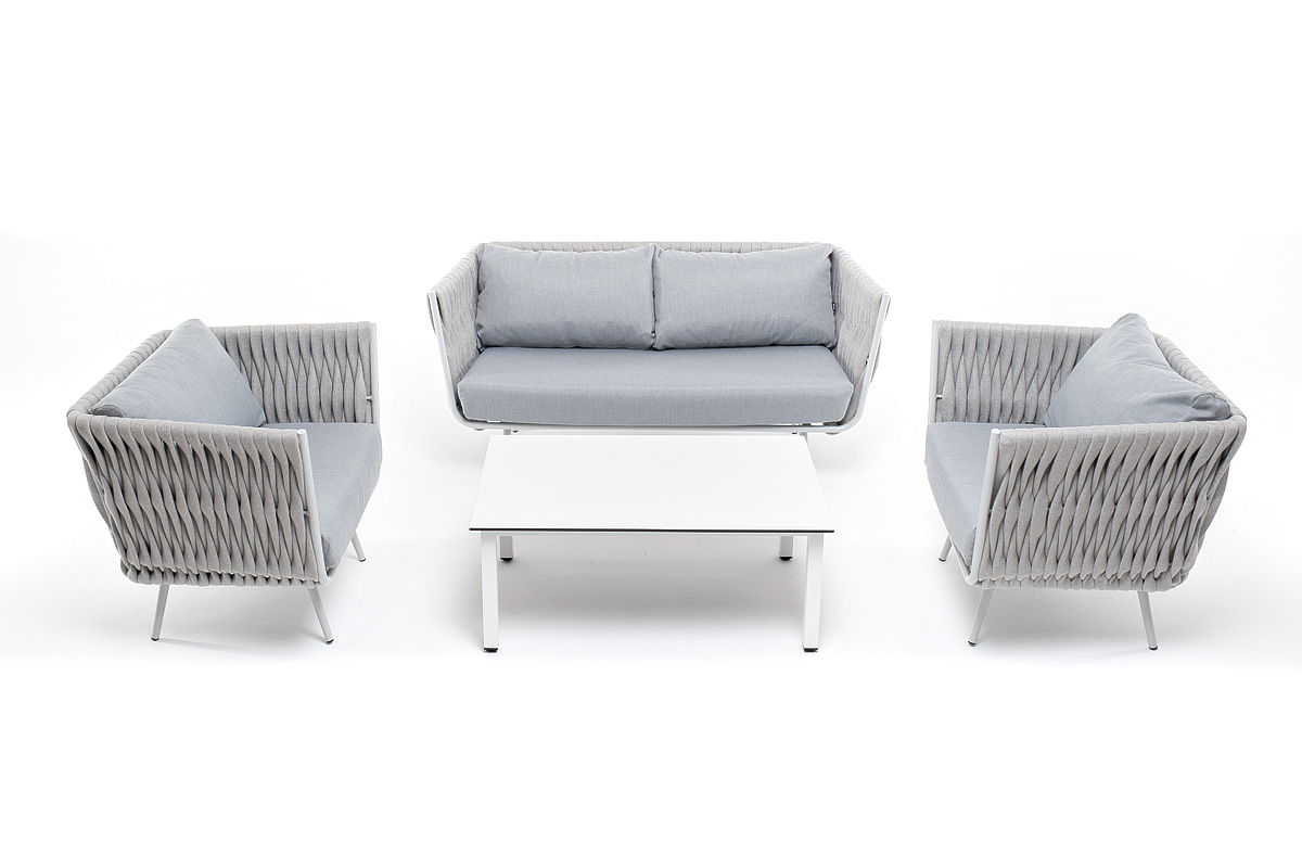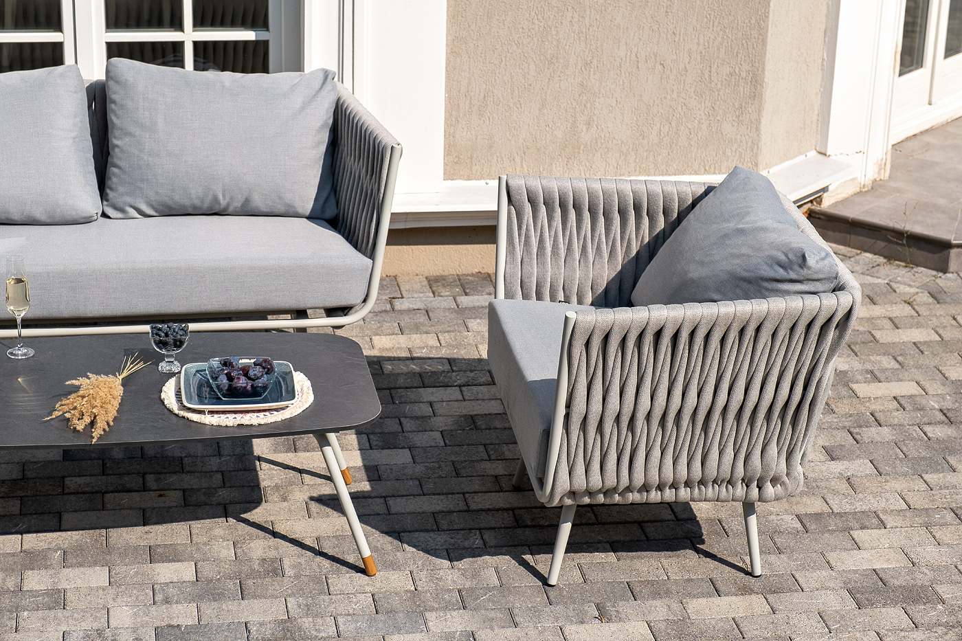 "Монако" лаунж-зона 4-местная из роупа со столом "Верона" (серый гранит), каркас светло-серый, роуп светло-серый
